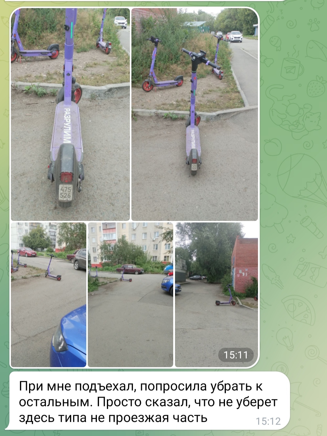 К моим порывам убедить местных самокатчиков не бросать свои т/с как мудаки подключилась ещё и супруга:
