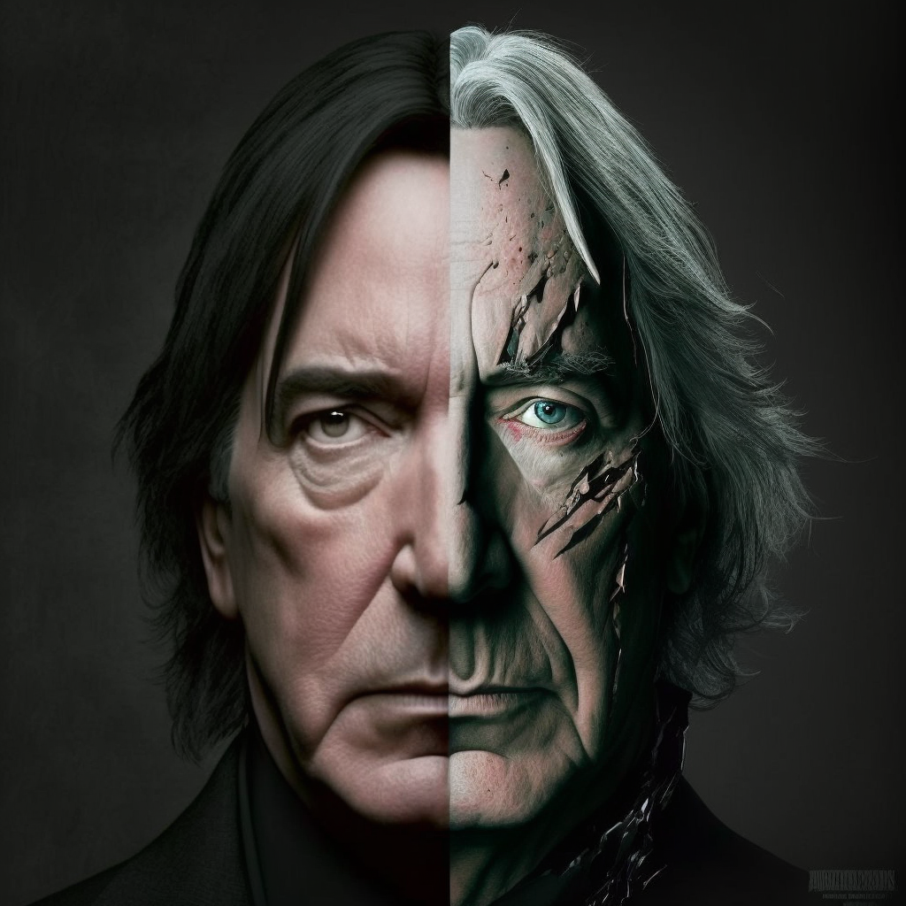 Промпт: Alan Rickman as Severus Snape As two face from Batman