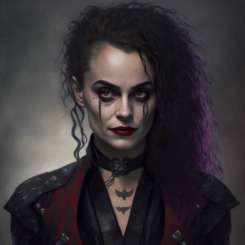 Промпт: Bellatrix Lestrange in Harley Quinn's suite