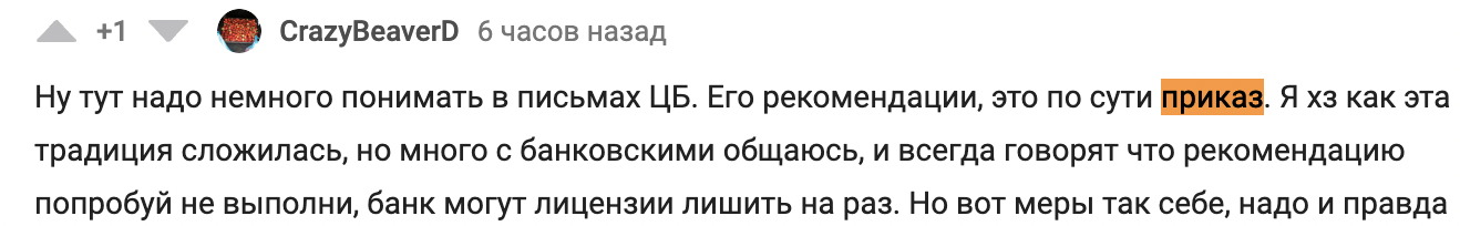 И «по сути приказ» — пять! #comment_250420053 Последние два комментария были запощены подряд один за другим.