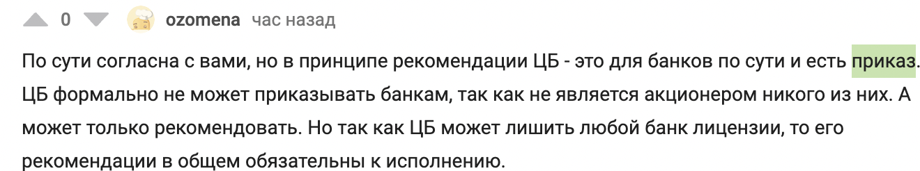 Написал я тут вчера пост о том, что вместо указа о кредитных каникулах, а лучше — кредитной амнистии, ЦБ разослал какую-то беззубую «рекомендацию» и это должно успокоить людей, которых вырывают из жизни прямо посреди их всех проблем, забот и обязательств. И получил забавную реакцию: пять подряд однотипных комментариев, в которых повторяются одни и те же формулировки.