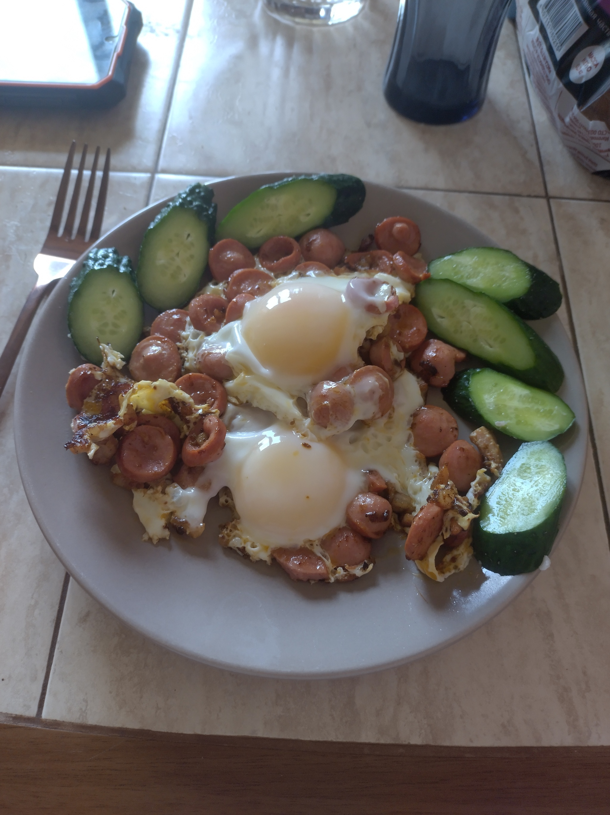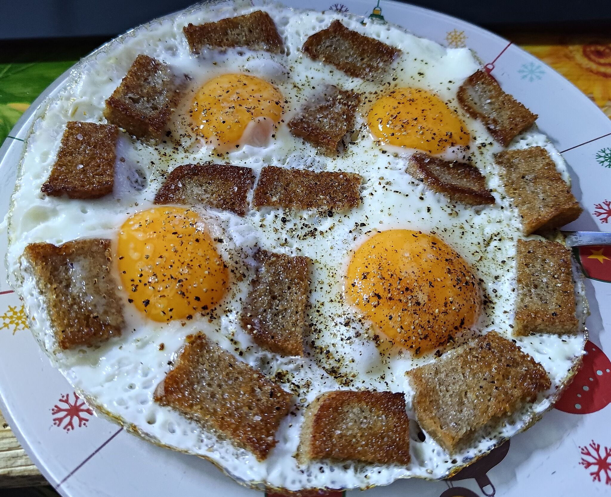А у меня по-прежнему просто яичницы, на чугунной сковородочке, красивые и разные.