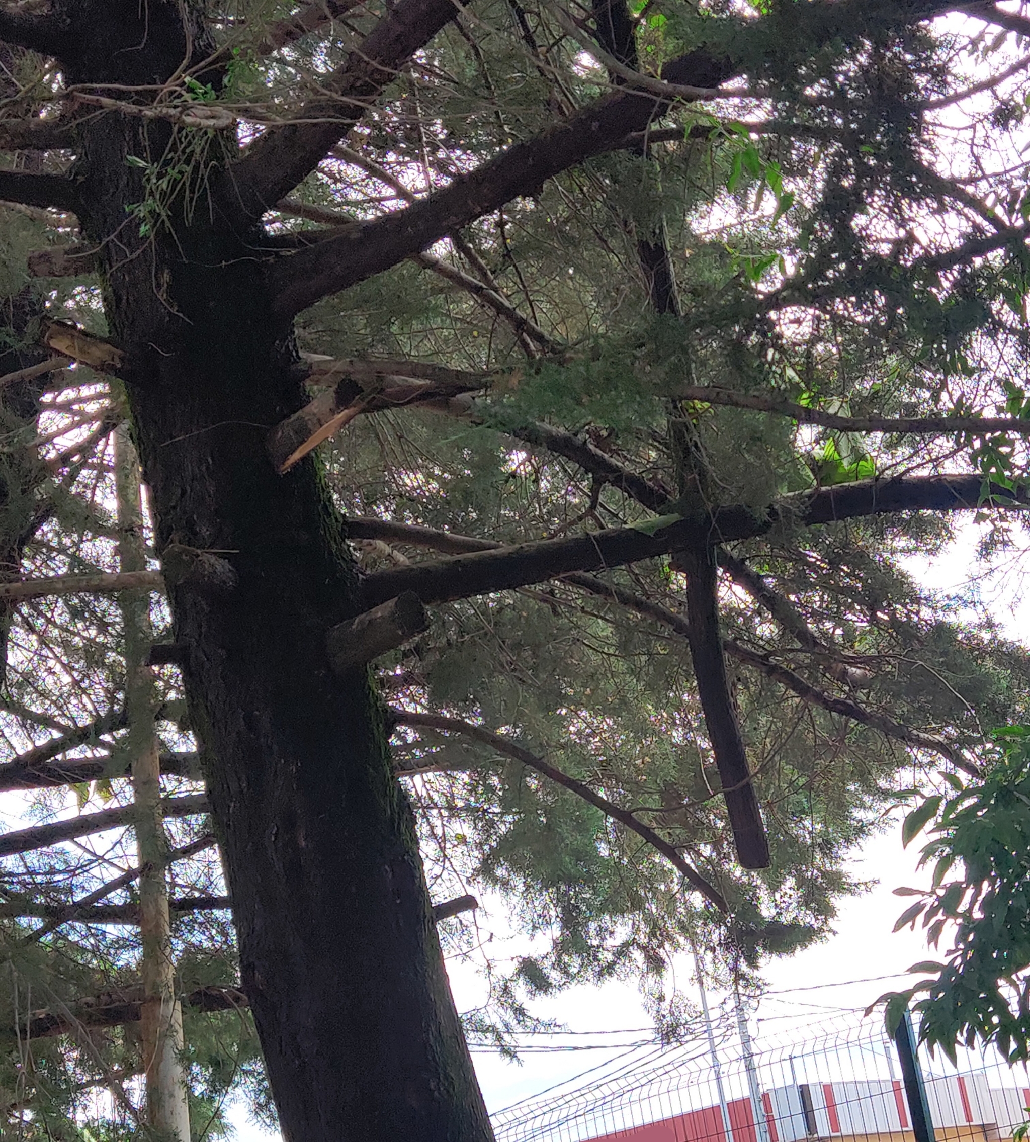 Теперь мы видим что-то дикое вообще — искромсаные ветви, одна ветка так и осталась висеть над головой.