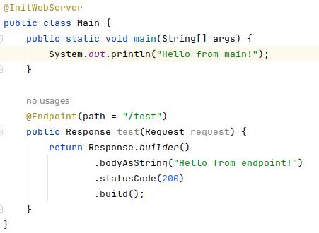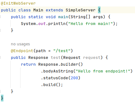 @Endpoint принимает четыре параметра: path, httpMethod, statusCode и filterContentLength. По умолчанию httpMethod равен HttpMethod.GET, statusCode равен 200, а filterContentLength равен -1.