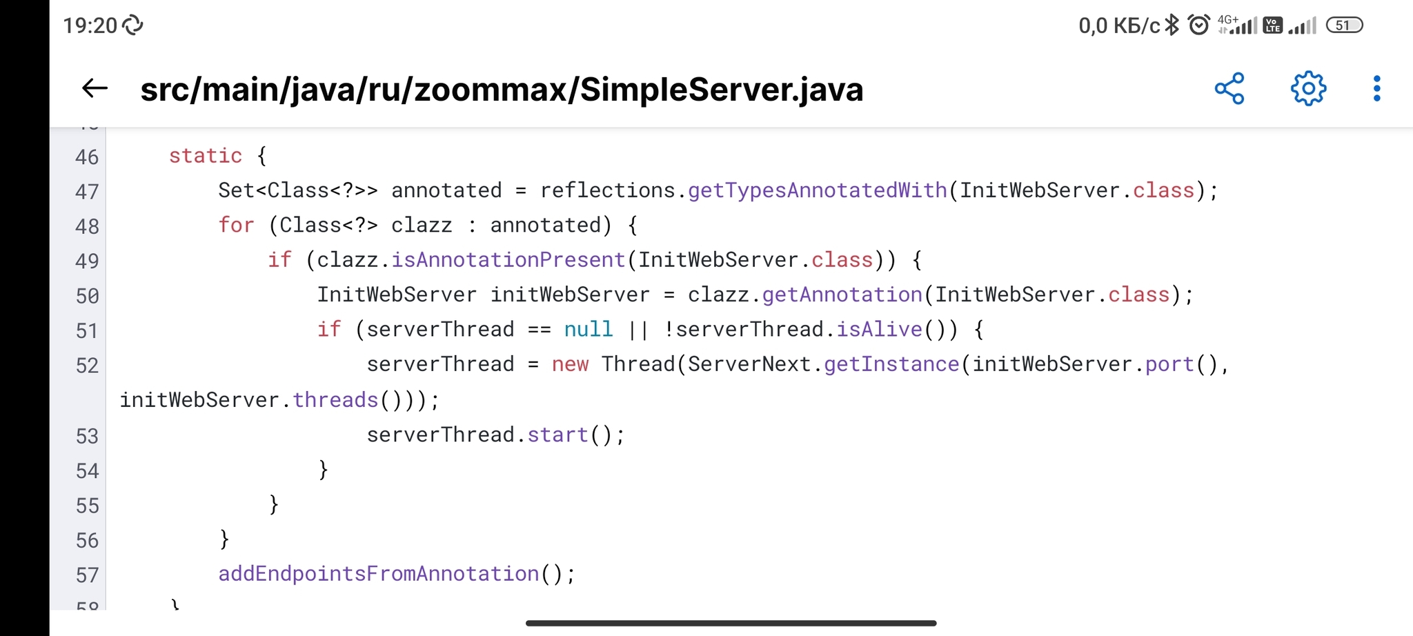 Метод или класс, который запускает сервер, должен быть аннотирован @InitWebServer.