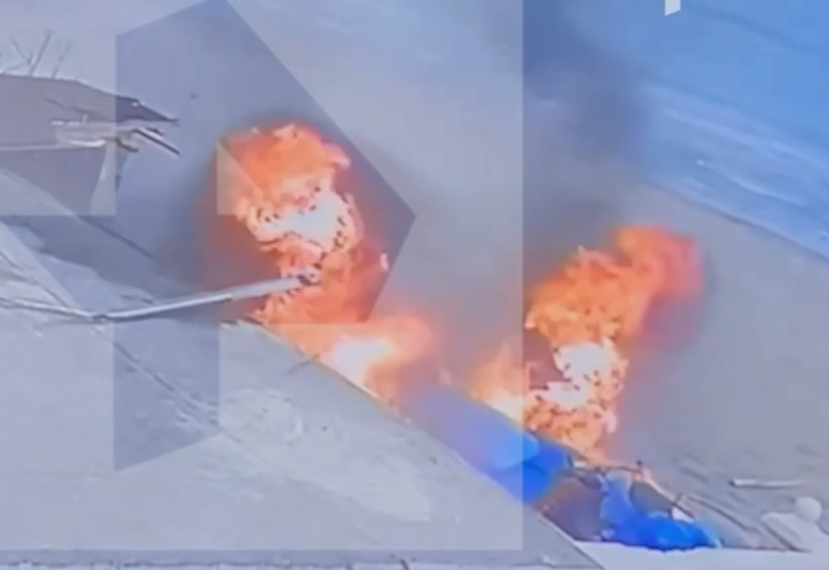 Через 5-7 секунд вертолет уже полностью объят пламенем.