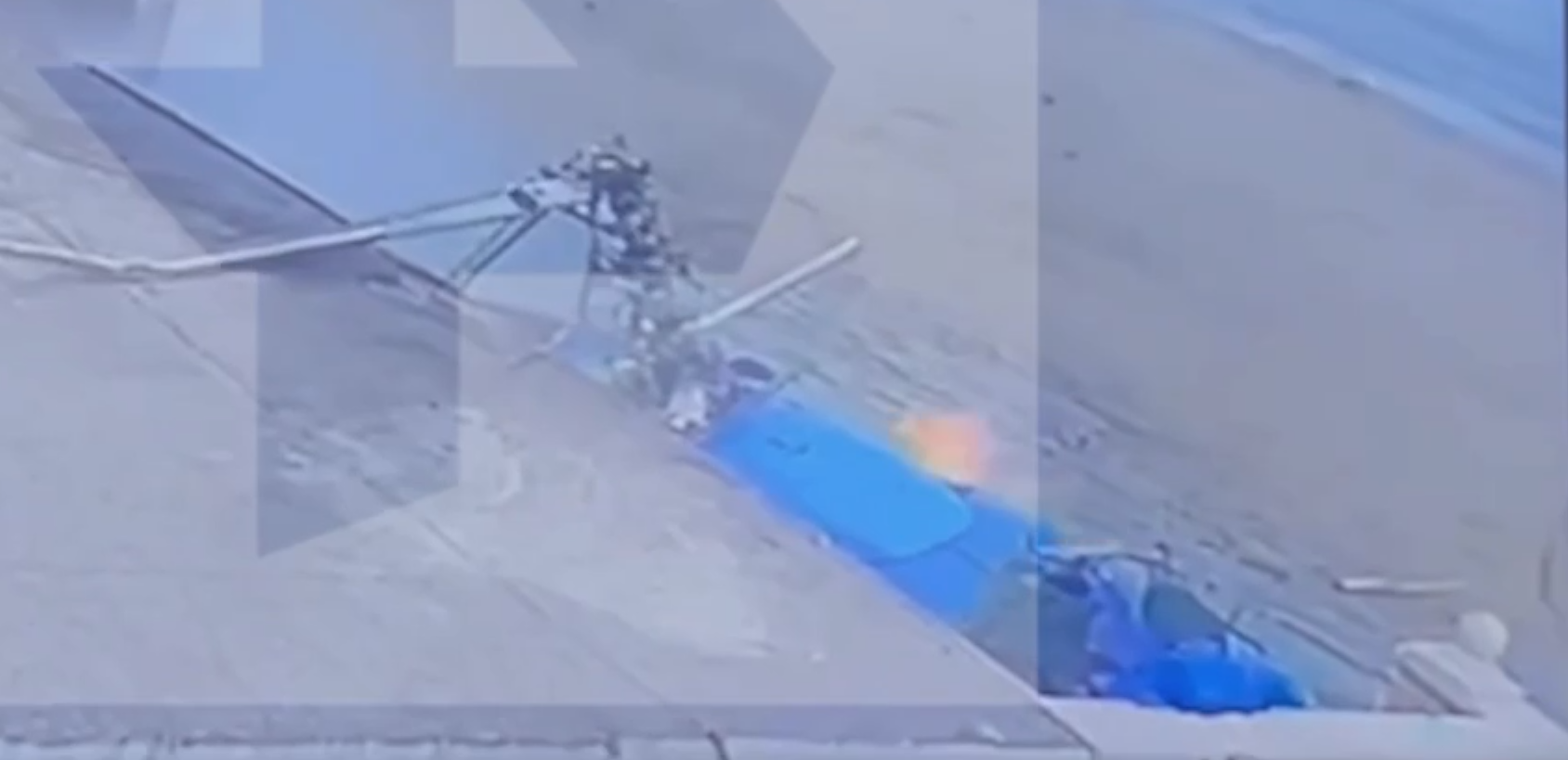 Учитывая что вертолёт падал на шасси, с большой вертикальной скоростью и со смещением, то скорее всего задние баки (или трубопроводы) и были проткнуты этими самыми подкосами.