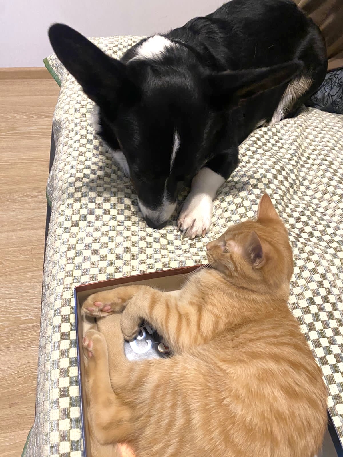 В добавок, Пряничек обзавёлся ещё двумя котиками и псом)😊 А Пёса больше всех хотела с ним дружить и дождалась!🤗❤️