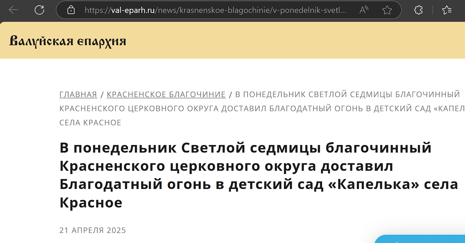 Церковь не только принимает "благодатный огонь" в свои храмы, но и приносит его в детские сады.