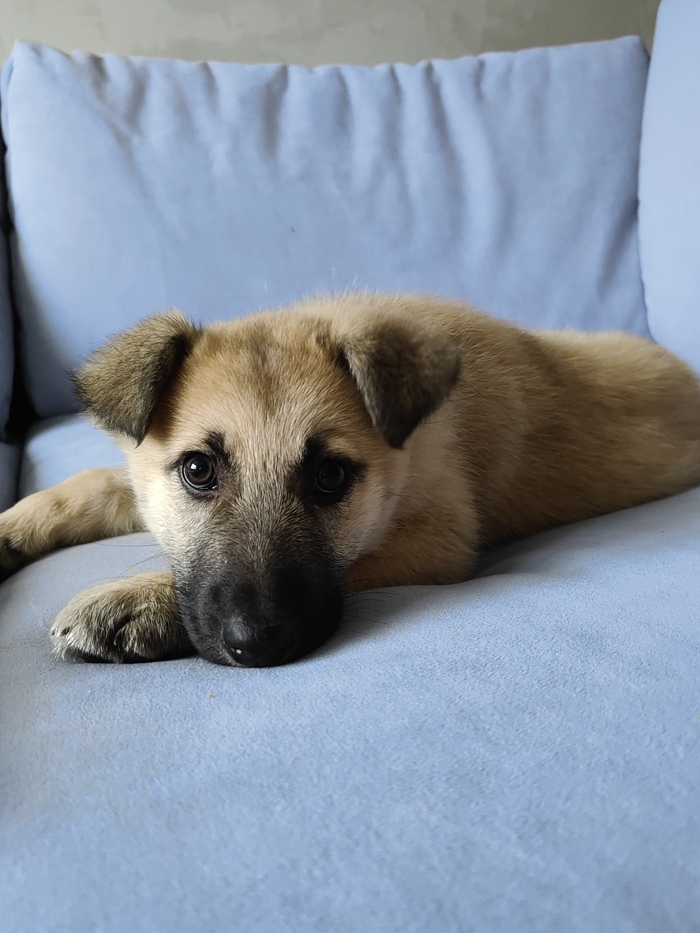 Очень добрая и очень умная. Но люди смотрят на внешность. Обычный рыжий щенок мало кому нравится.