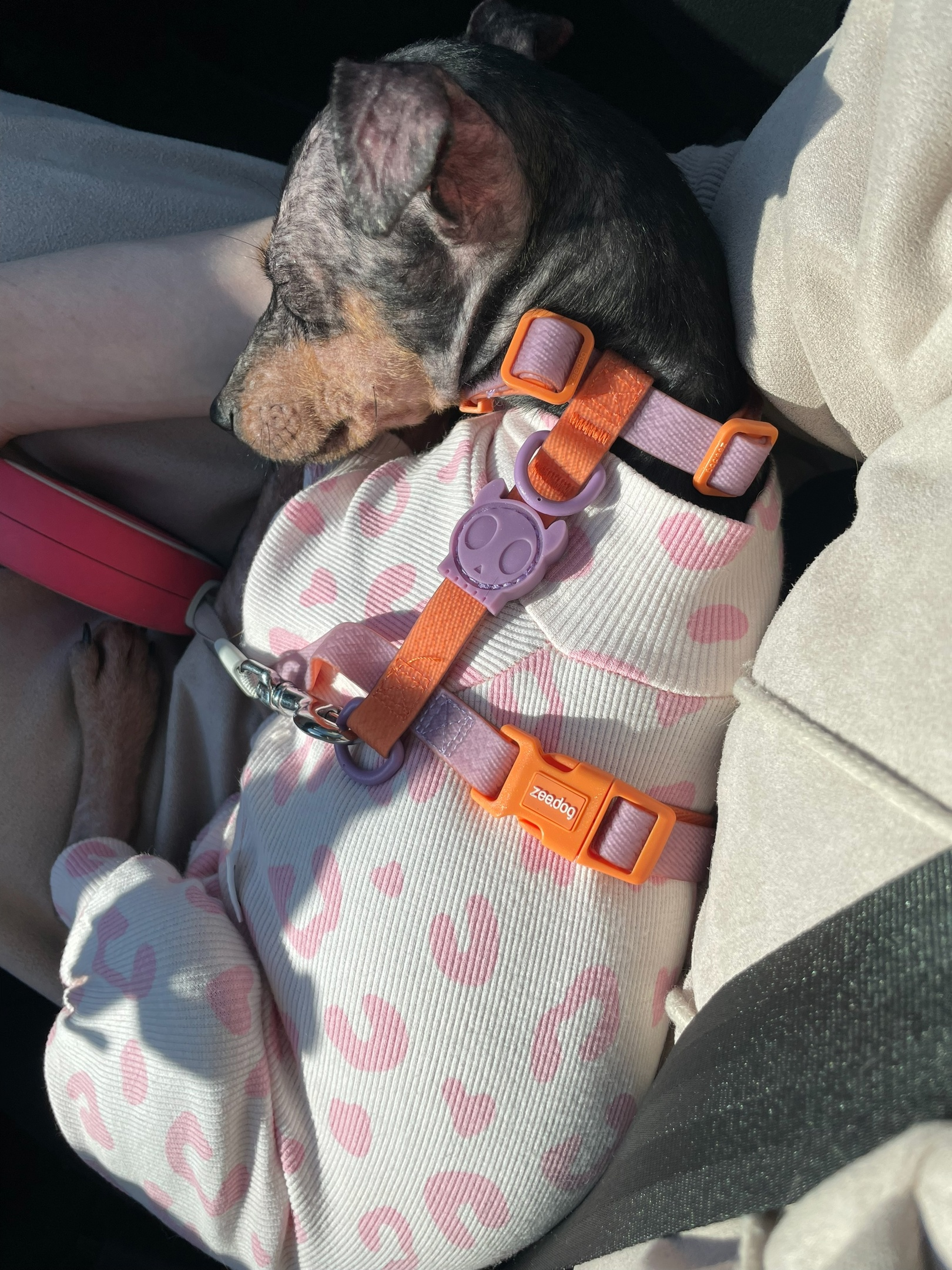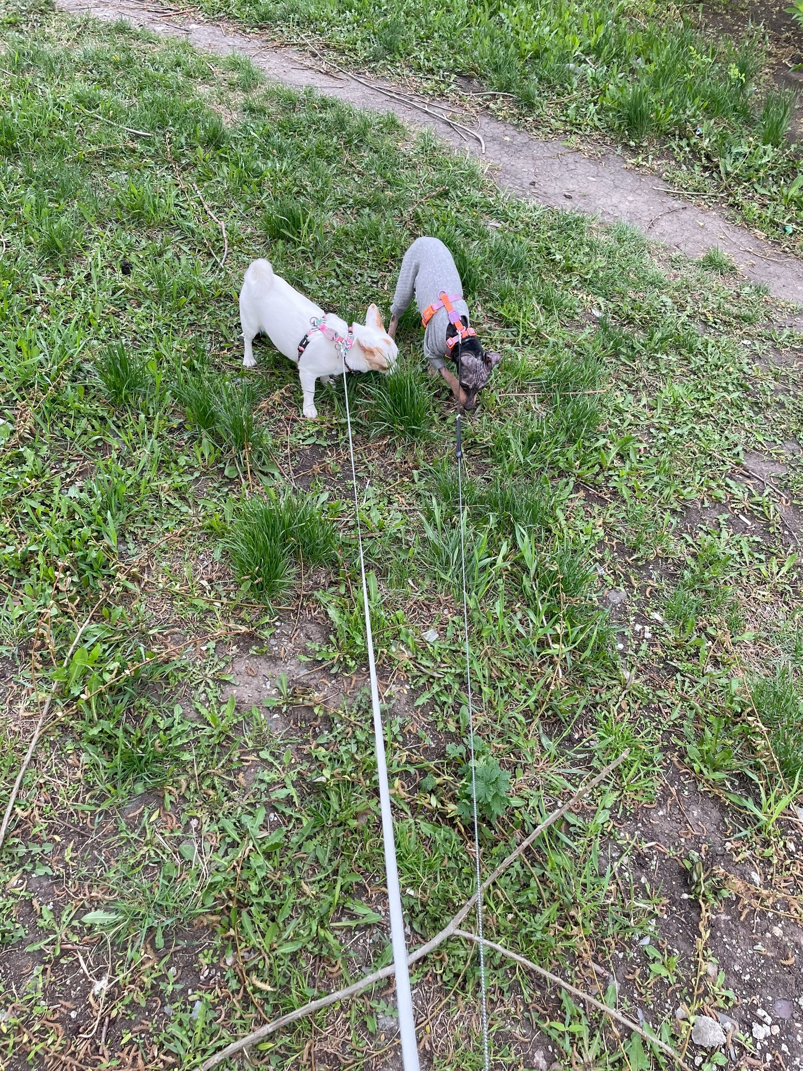 Потихоньку приучается к выгулу. Пока боится заходить в двери и выходить. Но это дело времени.