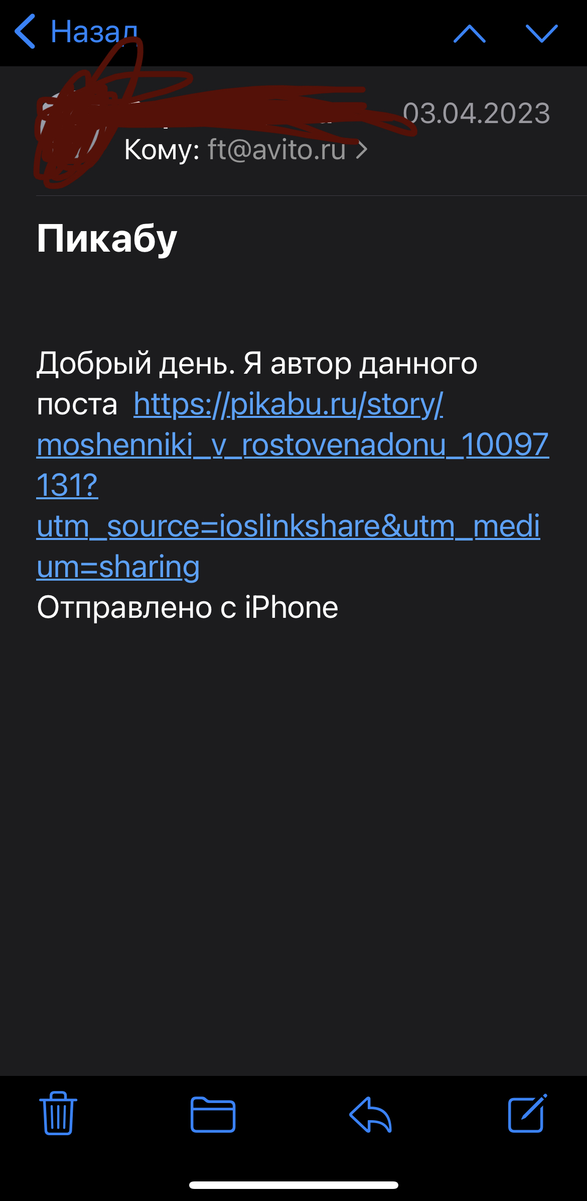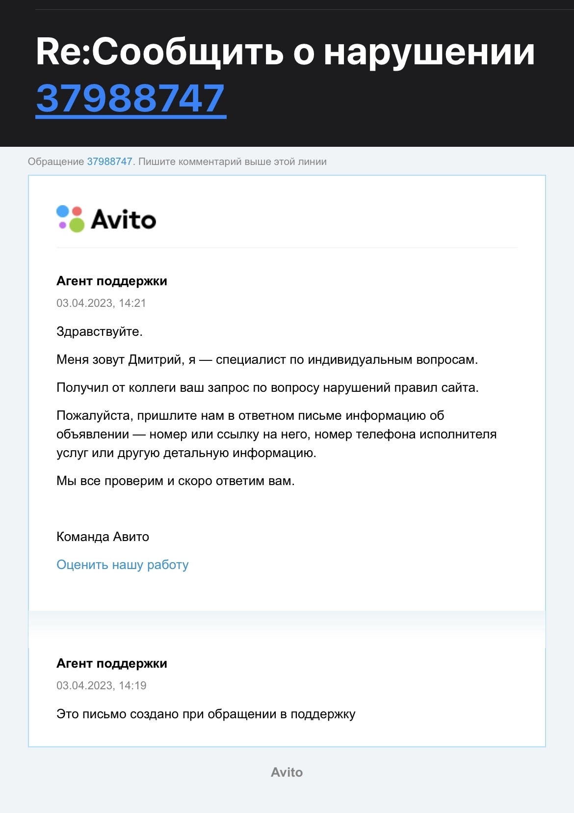В комментариях к основному поста Avito попросили написать на почту и приложить к письму ссылку на пост.