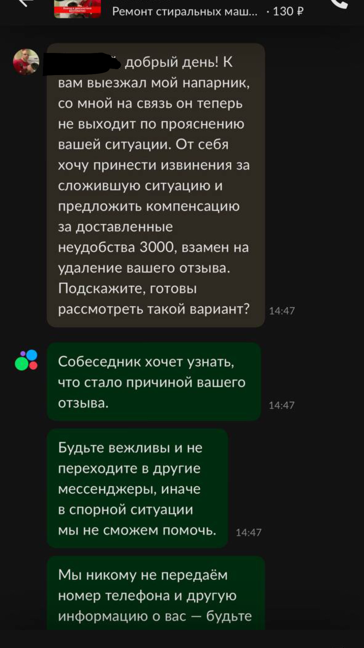 Тем временем, Avito решает таки пропустить негативный отзыв на объявление и мастер даже на него отвечает