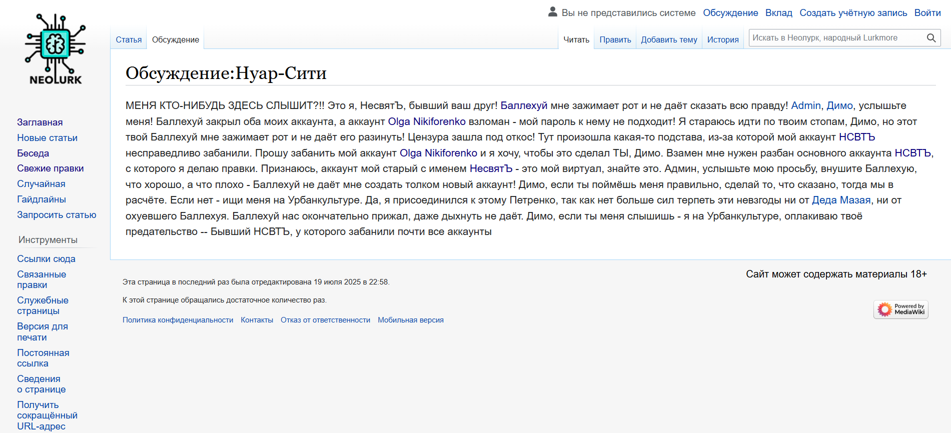 3 MightyMamatata 3 месяца назад Лига гражданской журналистики Продолжение поста «Neolurk сгнивает в зародыше»4 Последний вопль НесвятЪ, который так и останется неуслышанным. Луркморье Википедия Вандализм Давид Хомак Скандал Интервью Жалоба Беспредел Несправедливость Нейронные сети Бот Негатив Длиннопост Ответ на пост Волна постов 1 1 Ещё 0