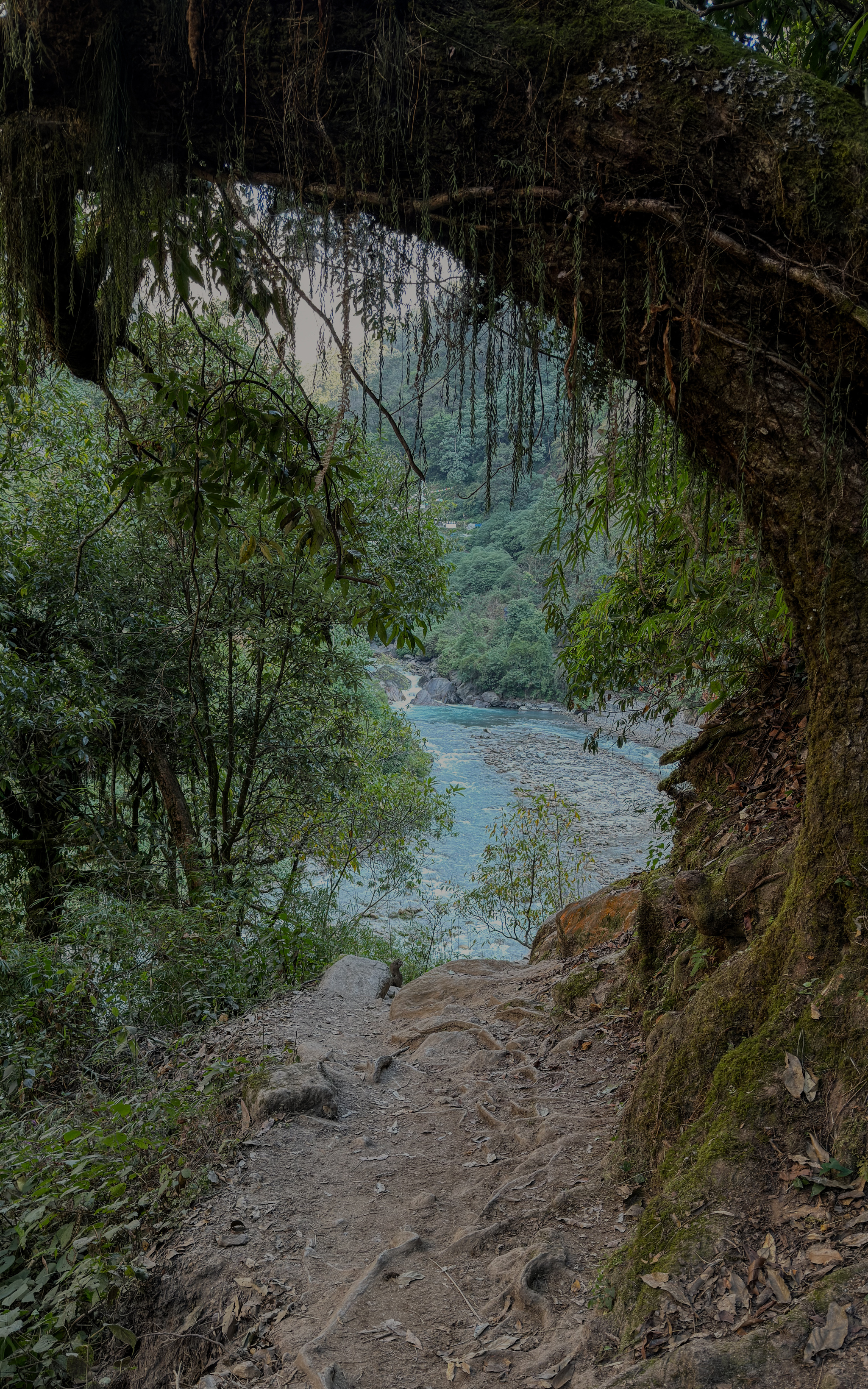 У реки Лантанг с левого берега тропа покруче, а справкой стороны дорога. Она тянется до данбы км 4 и по ней попроще бродить, а можно и вовсе доехать, но часть экшена потеряется. Тропка слевой стороны способна местами вдарить адреналину в кровь! Еще местами попадались неожиданные и огромные кактусы как в мексиканской пустыне
