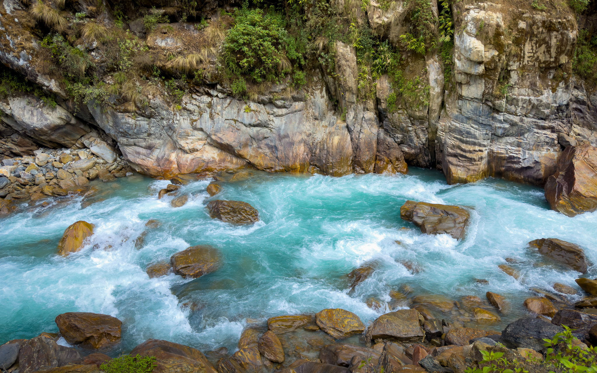Весь маршрут вдоль реки Лангтанг. Даже внизу она бурная, что я не рискнул бы сплавляться в ней на чем бы то ни было. Сама водичка чистейшая, так бы и черпал кружкой! Но выше все же несколько деревень и пасутся Яки, так что делать этого все же не стоит.