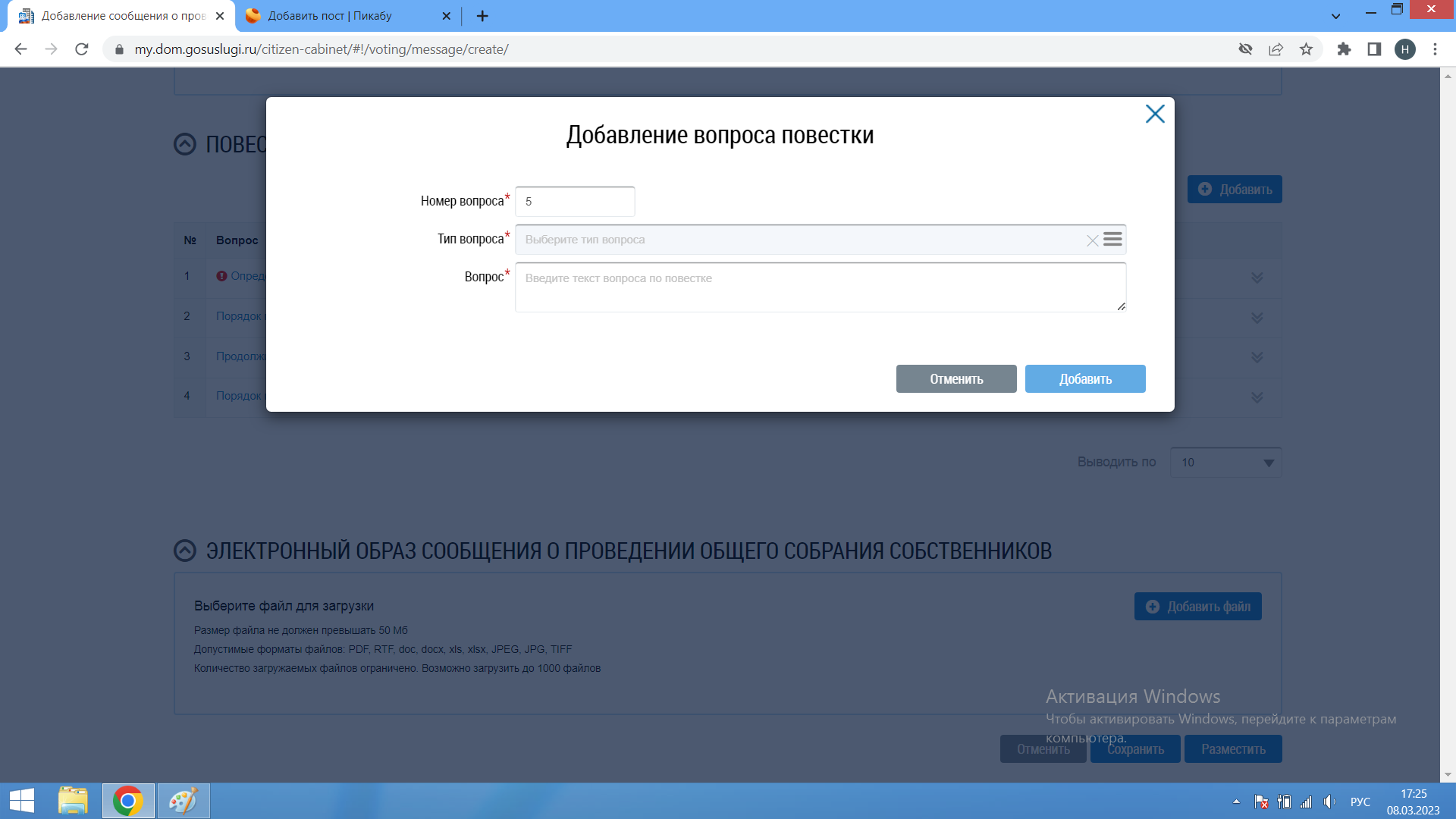 и кнопка "Добавить файл", нажимаем и добавляем текстовый документ с объявлением о голосовании и кратким перечнем вопросов который мы выше уже внесли. теперь либо сохраняем, вдруг подправить чего надо, либо публикуем если всё готово. Возвращаемся на главную страницу ЛК и заходим в Форум Дома