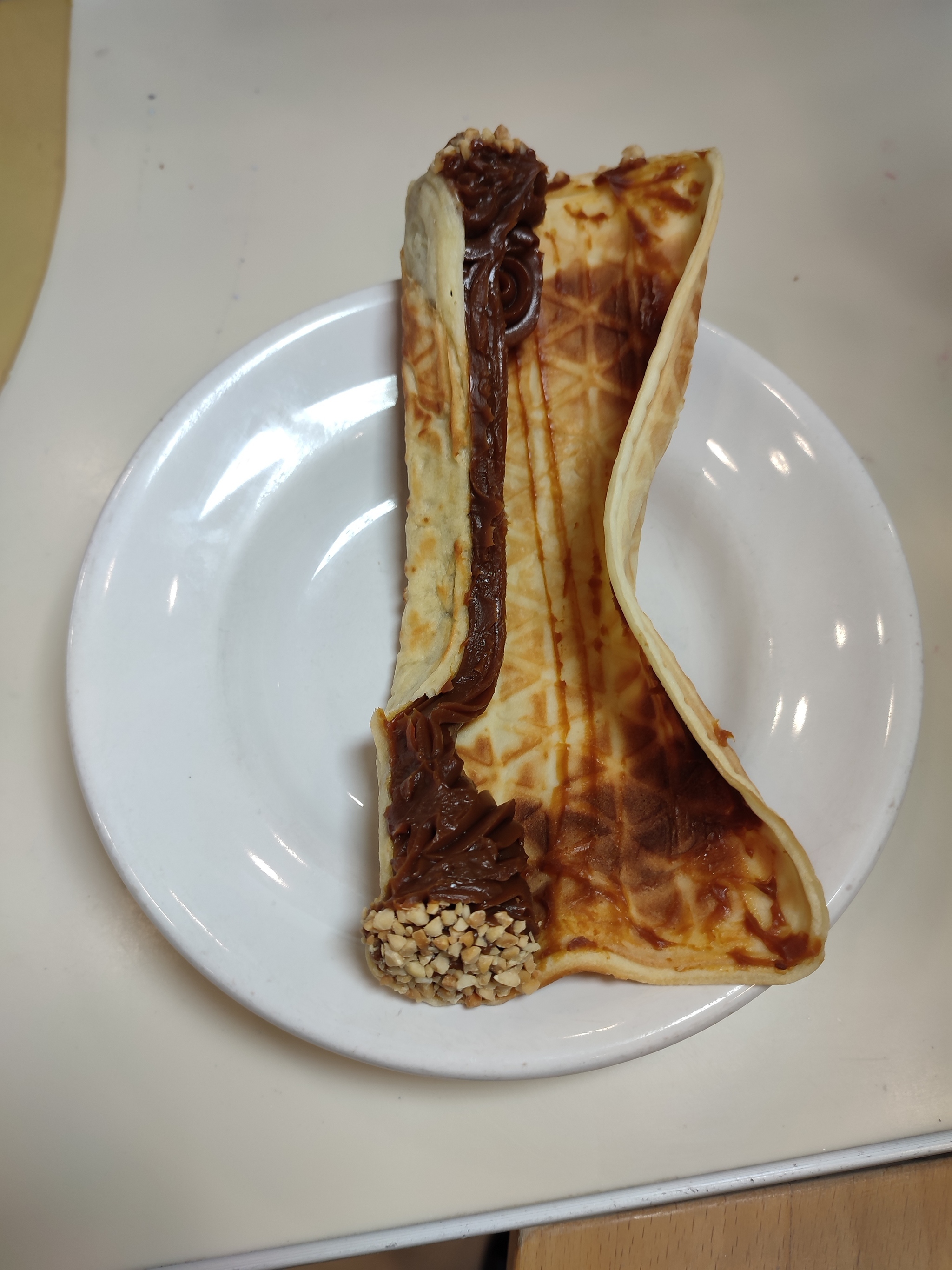 Ну и забыл про этот случай, потом долго не заходил в эту пекарню, и вот на днях снова заскочил, увидел на витрине трубочку с сгущенкой и решил купить и посмотреть, изменился ли подход.