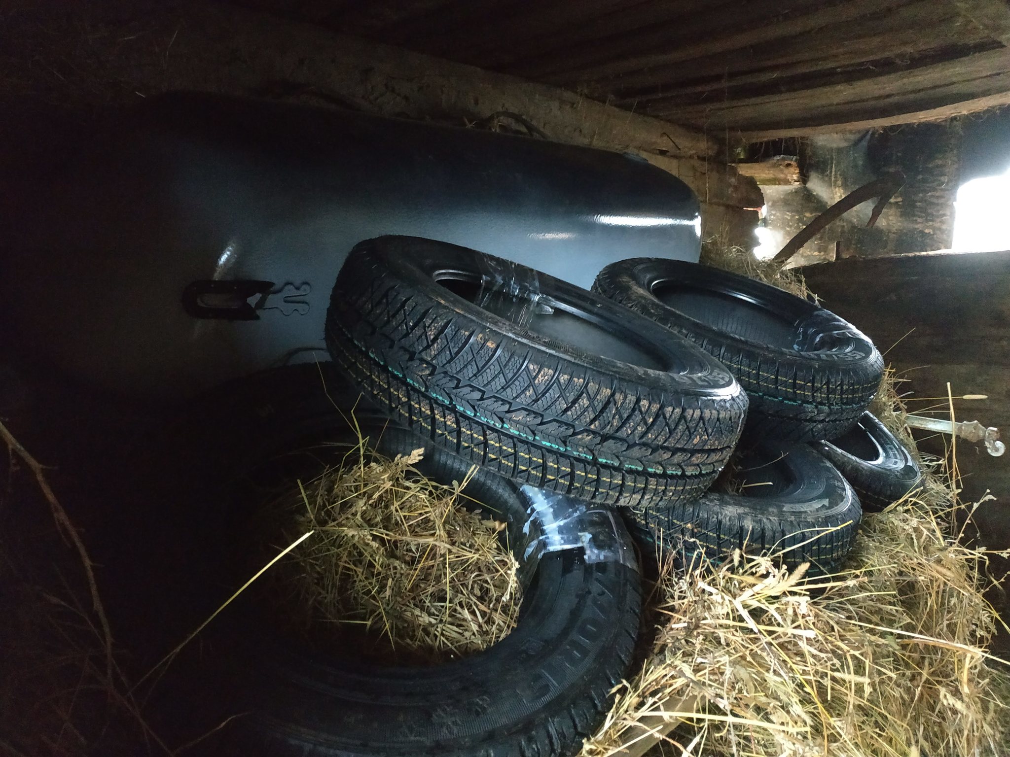 А на заднем плане, за ними, мечта моих последних лет - ванна. Нет, с большой буквы - Ванна. И опять - благодаря вам. Когда четыре года назад покупали дом, тут дыра в потолке была, а в ней облака и на полу жил одинокий землеройк, который по утрам бурча и перебирая хвостик строго смотрел на нас с середины комнаты... Дом был совсем заброшенный и очень деревенский колодец, удобства на улице... Оля была еще здорова, и первым делом мы конечно протянули два километра оптоволокна... Ребята! Сеть, как выяснилось, важнее сортира с мыльней! Потом, потом, фортуна - вжух, и остались одни руки в хозяйстве. Да. Ну, скважину и насосную станцию в старом погребе, водопровод в дом, я сделал в позапрошлом году. Канализацию и горячую воду, тоже своими руками, сделал в прошлом, а этим летом, несмотря на прививки (Модерна, 2 этапа), болели ковидом, Оля, к счастью перенесла легко, а я был совсем слабый и при необходимости, несмотря ни на что, ухаживать за всем хозяйством, так как мы тут только вдвоем, почти на карачках проболел два с половиной месяца и на ванну меня пока не хватало. Зато вот теперь, еще раз, благодаря вам ребята, удалось в придачу к шинам привезти и ее. Теперь дело за ручками и инструментом, ну это думаю получится...