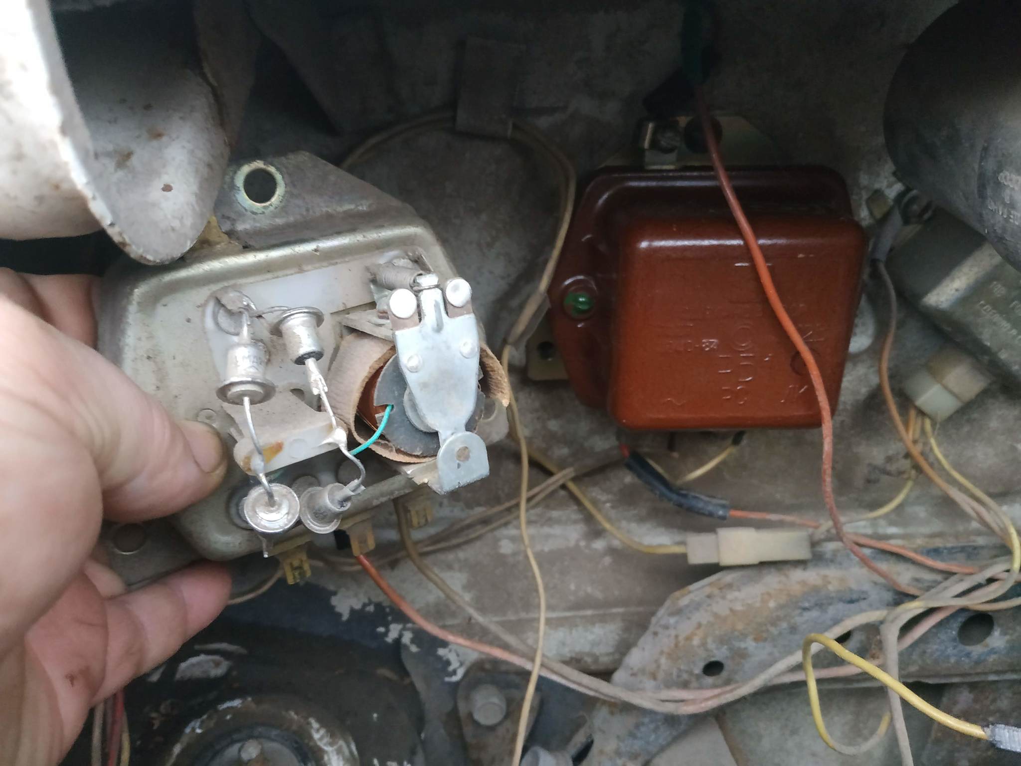 Еще приехало реле блокировки стартера, это которое переключает с аккумулятора на генератор при запуске двигателя, и я поменял его в жужике. Вроде работает.