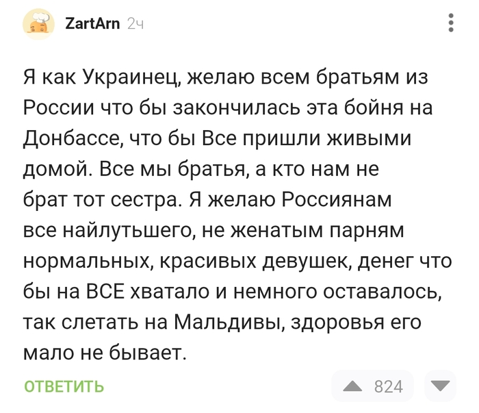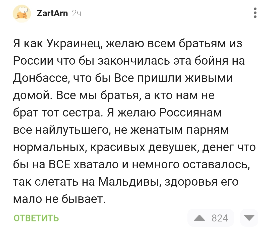 2930 Katotewikufu 9 месяцев назад Продолжение поста «Оставлю этот комментарий на память»3 Продолжаю рубрику "не всё так печально с жителями Украины". Спасибо тебе, @ZartArn, что есть ещё такие, как ты, твой комментарий я тоже сохраню. #comment_334690199 Скриншот Комментарии на Пикабу Украинцы Политика Ответ на пост 98 12 7 4 2 Ещё 0