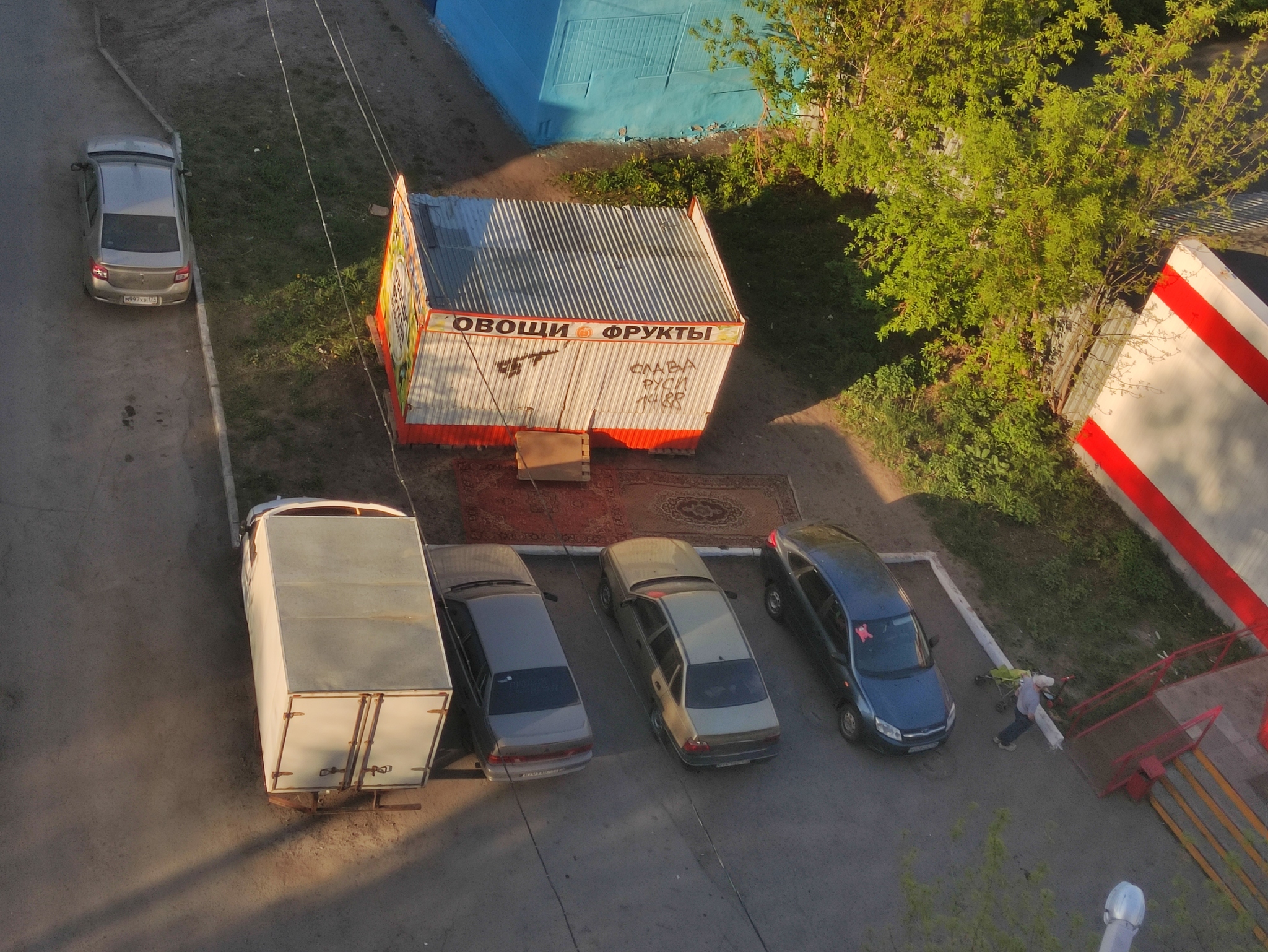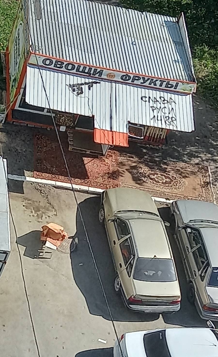 Хозяин ларька с братом расстелили перед входом советский ковёр, а на парковке перед ларьком установили табуретку, чтобы никто не парковал машины.