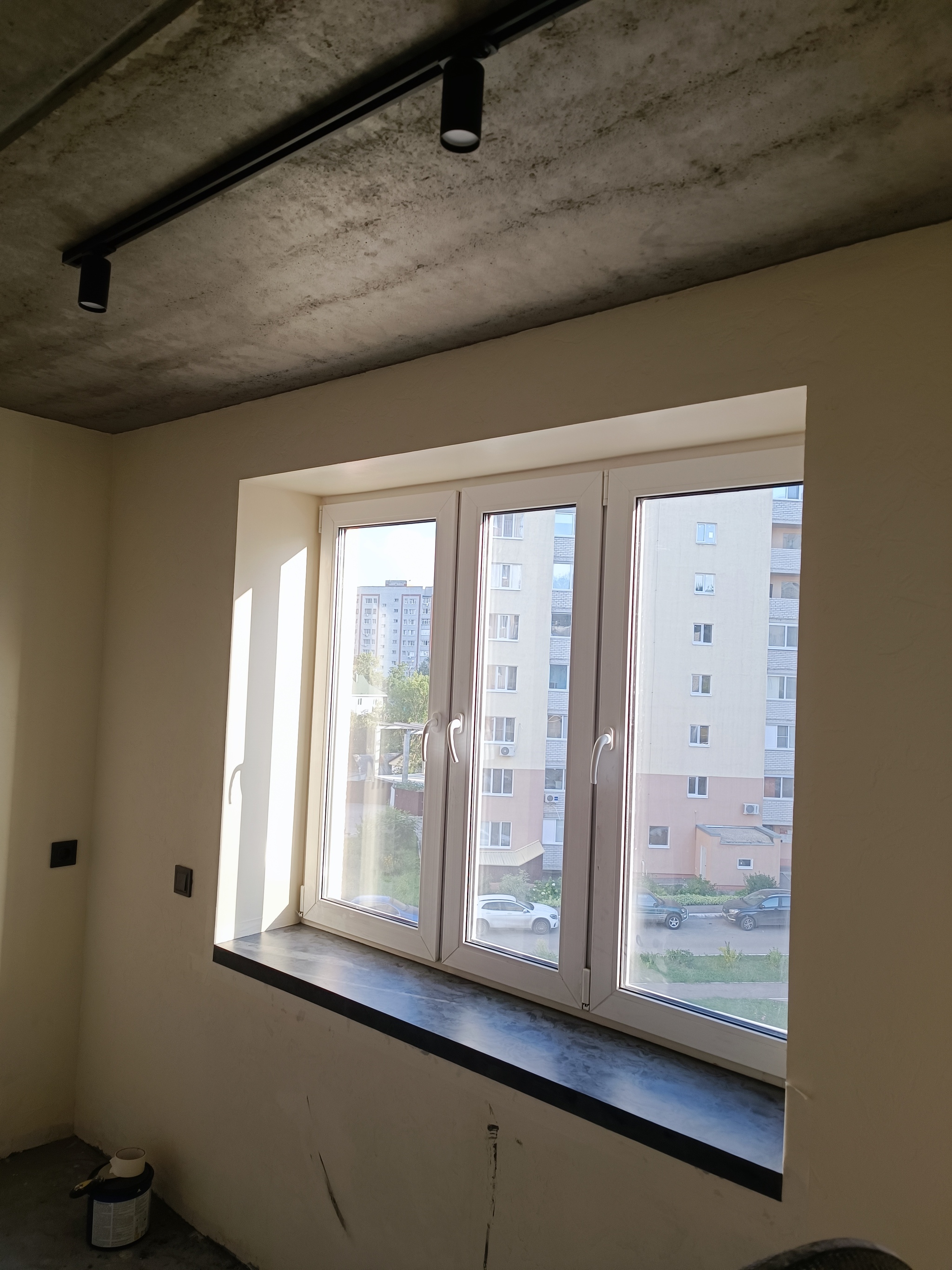 Откосы делал панелями пеновластовыми и шпаклевал.