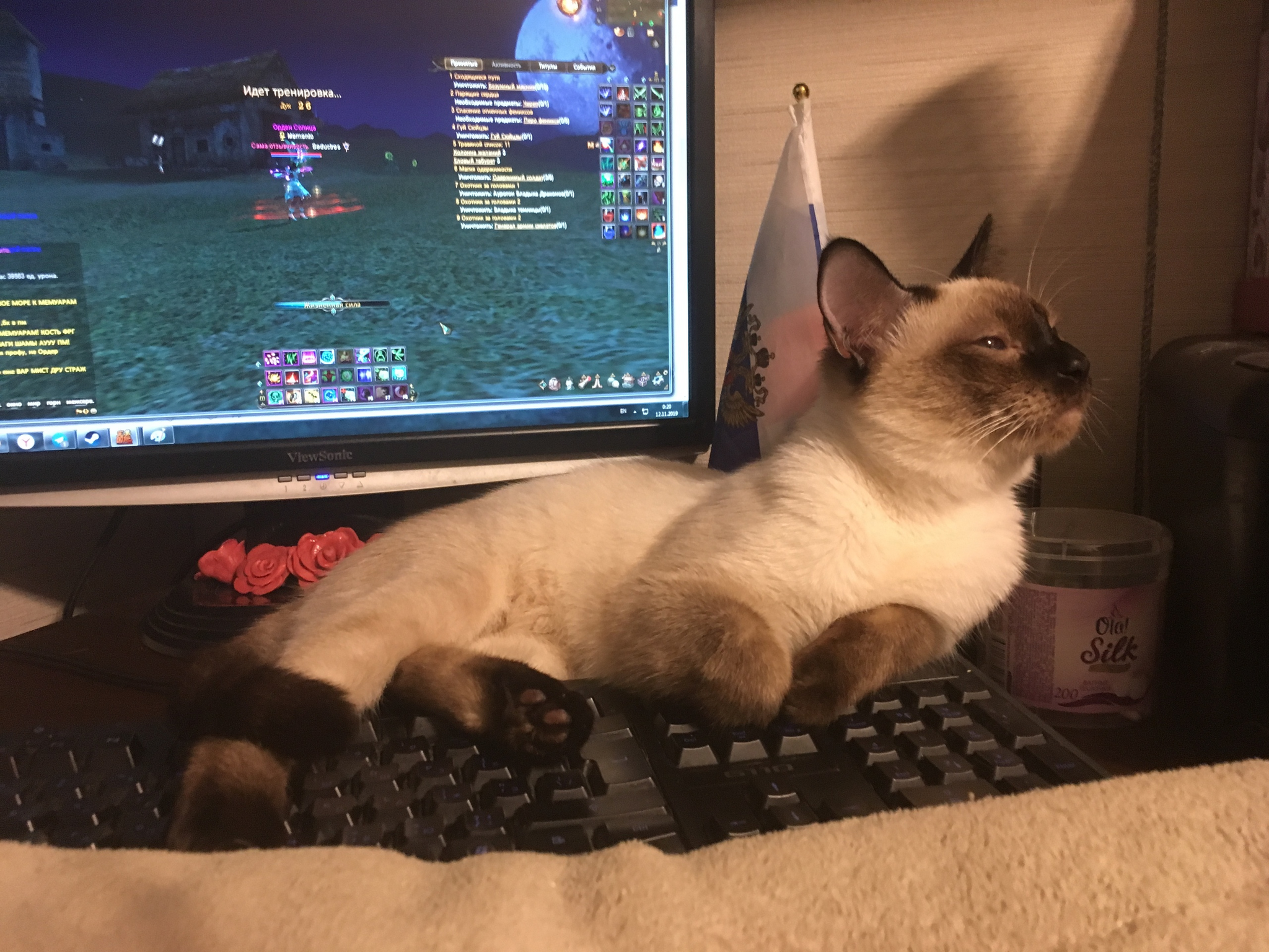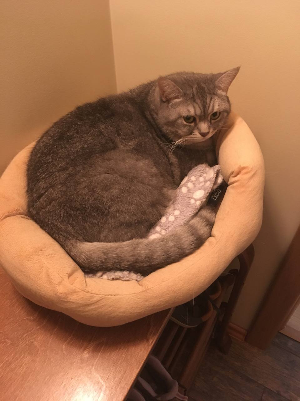 Чтобы котенька не плакал и чувствовал себя ближе ко мне, нам пришлось стелить ему плед прямо на компьютерный стол - там он спал, мурлыкал и выглядел совершенно счастливым. Но сидеть на месте у Юры не получалось, и однажды он решил поучаствовать в нашей переписке: набрал моей подруге непостижимую фразу - "Опять 5ккккккккккк5ккекееен6нк не не не Неёлова на ннннннна них нннн". После этого муж придумал нам макрос для блокировки клавиатуры, чтобы защитить переписку и дать Юре безопасное место для сна. Юра был вторым крупным животным в доме. Через какое-то время мы начали выпускать его из комнаты в квартиру.