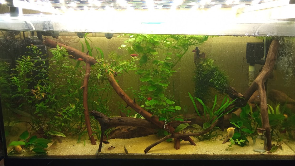 В ближайших планах докупить еще растения, сомика, пару девочек петушков.