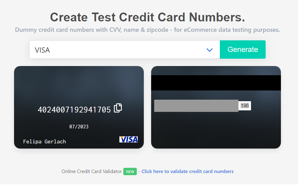 Пока мошенник не в сети заходи на сайт для генерации фейковых карт и генерируем фейковые номера карт.