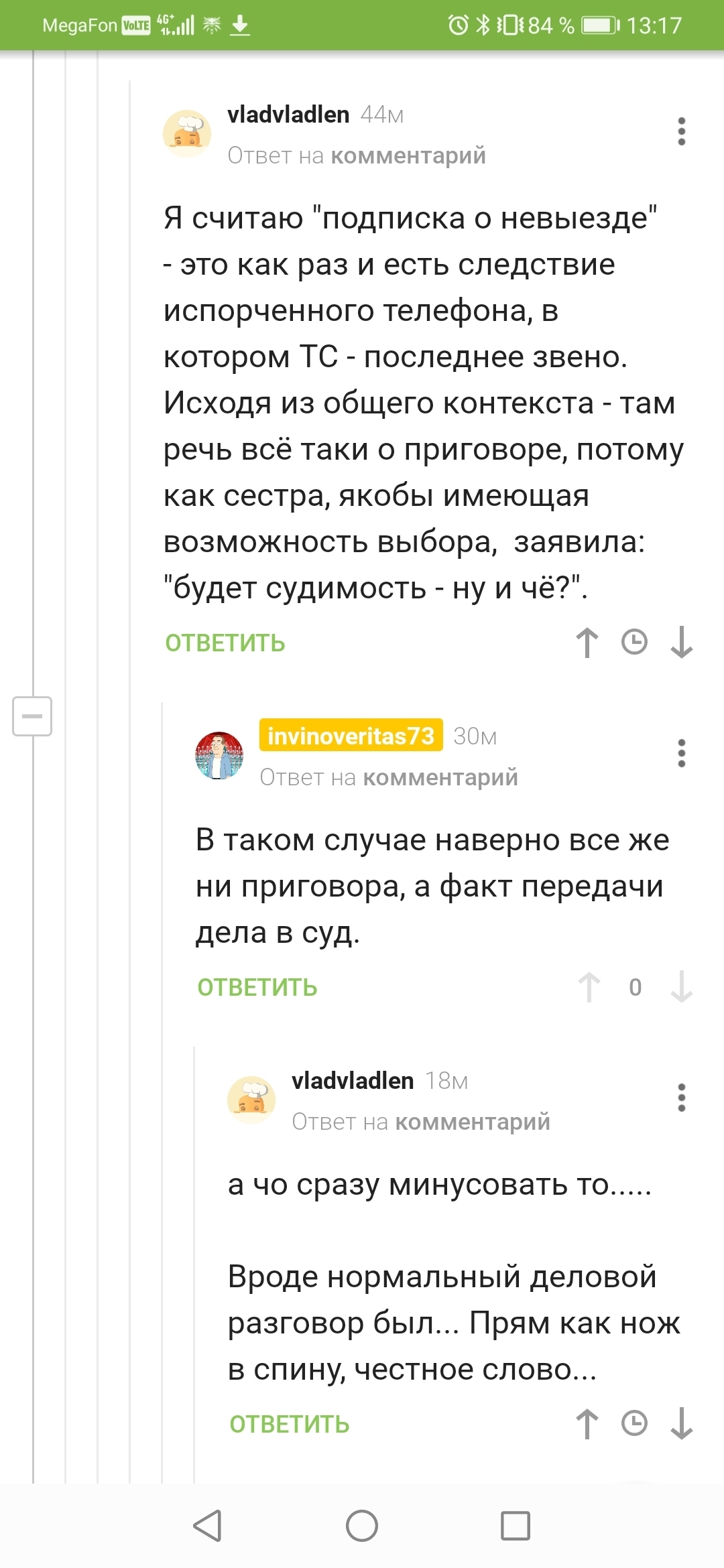 Время до выдочи вердикта час, есть время обдумать хорошо. Любой косяк и поедет на нары. Писал я ей много, уговаривал выбрать штраф. Её ответ, цитаты