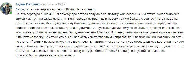 Итак, в продолжении поста. Прежде всего хочу поблагодарить откликнувшихся, а так же отдельно доктора Костенецкого. Советы хорошие дал, сегодня буду показывать собаку столичному ветеринару, заодно покажу, что посоветовали знающие, дабы все факты в кучу собрать. Думаю, если покажу переписку из открытой группы доктора Костенецкого https://vk.com/dr.kostenetsky , то не нарушу никаких авторских прав. Итак, смотрим.