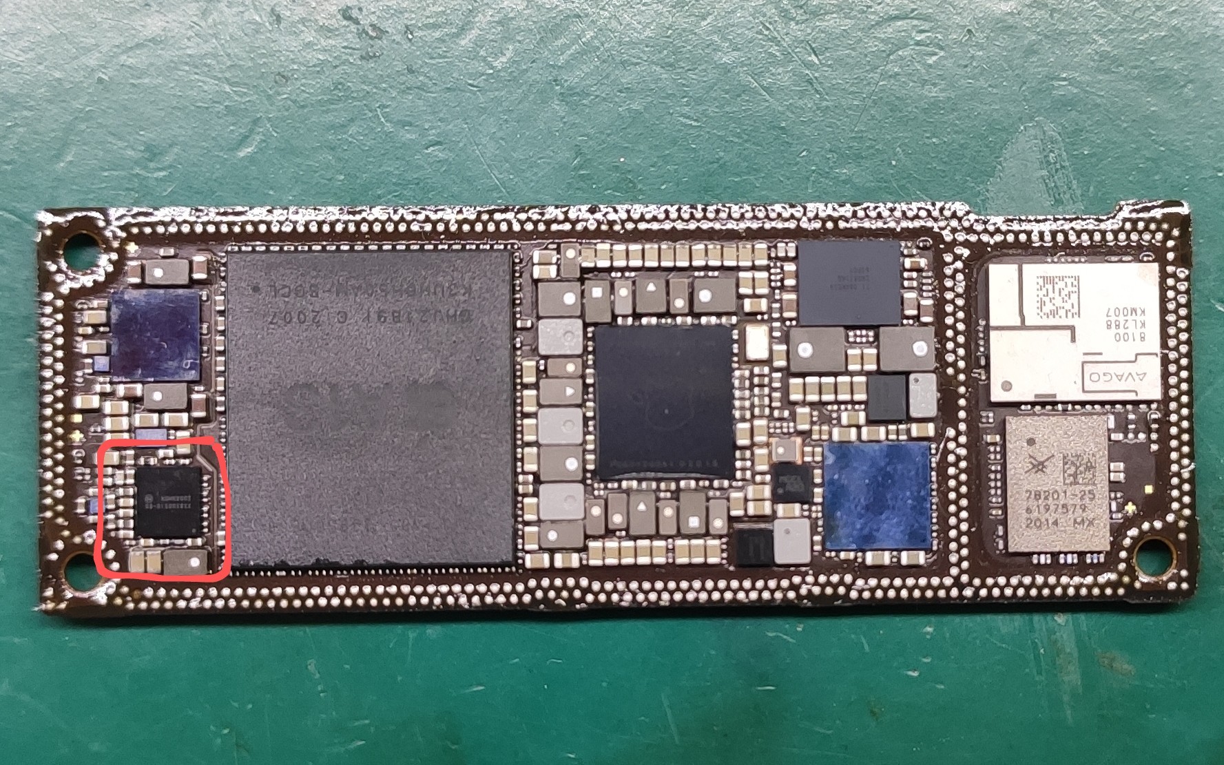 Но увы, он не заработал. Я очень долго возился с ним, почти 3 недели, прежде чем стало ясно, что чип не пережил демонтаж. Умер. Он очень тонкий и хрупкий, находился как раз рядом с местом выстрела. Причём я немного разобрался с осциллографом и команды от процессора приходили, но чип молчал. Более того, он просаживал всю линию модем-вайфай-нфц и при перезапуске телефона wifi бывал неактивен пару секунд. Пришлось питание nfc отрезать и забыть про него. Жалко, но такое случается и этот чип замене не подлежит (пока что).