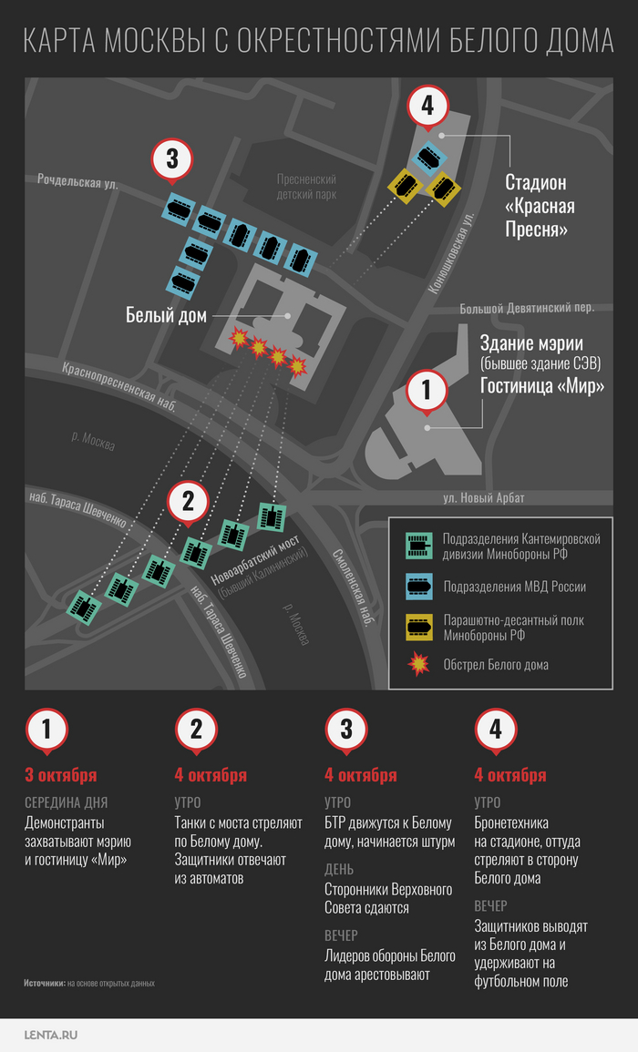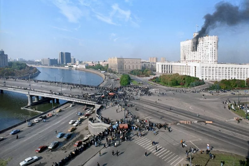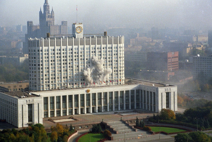 В понедельник, 4 октября, на работу многие москвичи не пошли. Оставшиеся дома могли видеть в прямой трансляции CNN, как танки прямой наводкой расстреливают с Новоарбатского моста быстро подрумянивающийся Белый дом.