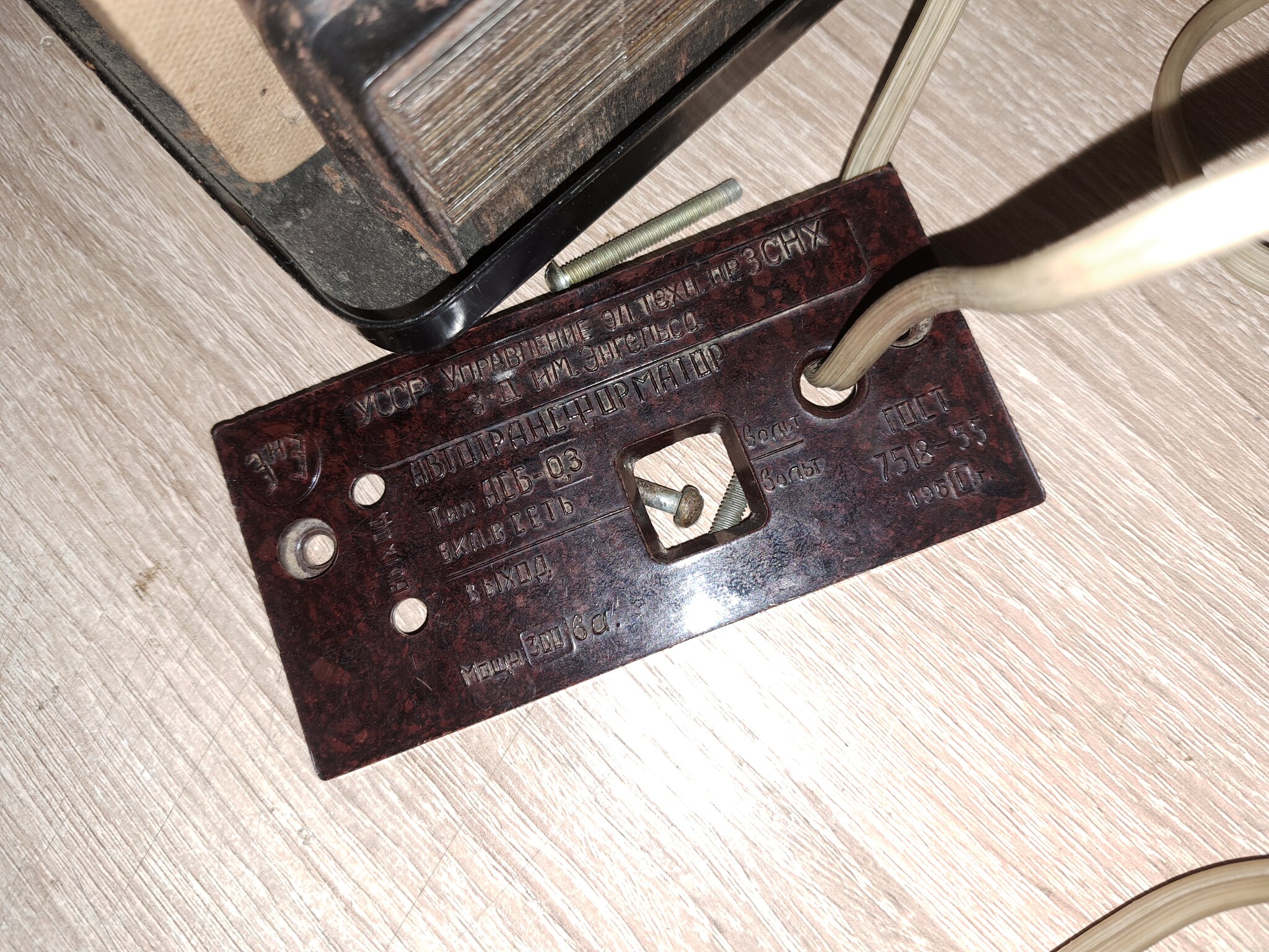 Собранный автотрансформатор 1961 года, только корпус от 1962 года, всё остальное 1961 года. Коричневый шнур - не родной, родной был нормальный, но с чужеродной белой вилкой из 80-х.