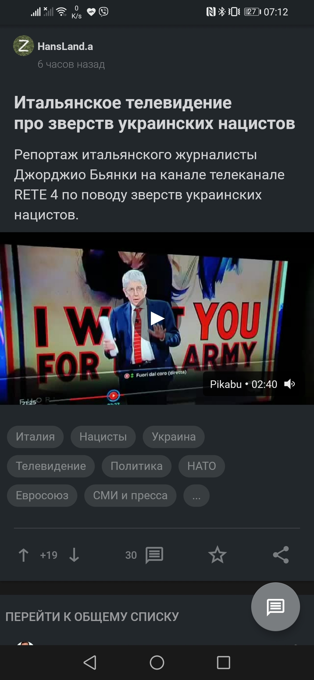 А, ну и на сладкое-непонятное видео Итальянское телевидение про зверств украинских нацистов