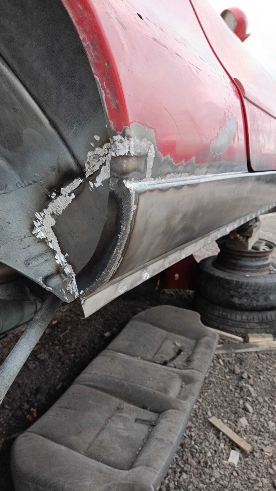 Попутно было принято волевое решение - крылья и дверь на помойку. Смысла варить особо нет. Коррозия съела низ крыльев полностью. На двери вмятина, которая потянула металл и складки со шпаклей не избежать. Цена решения 30 тыр.