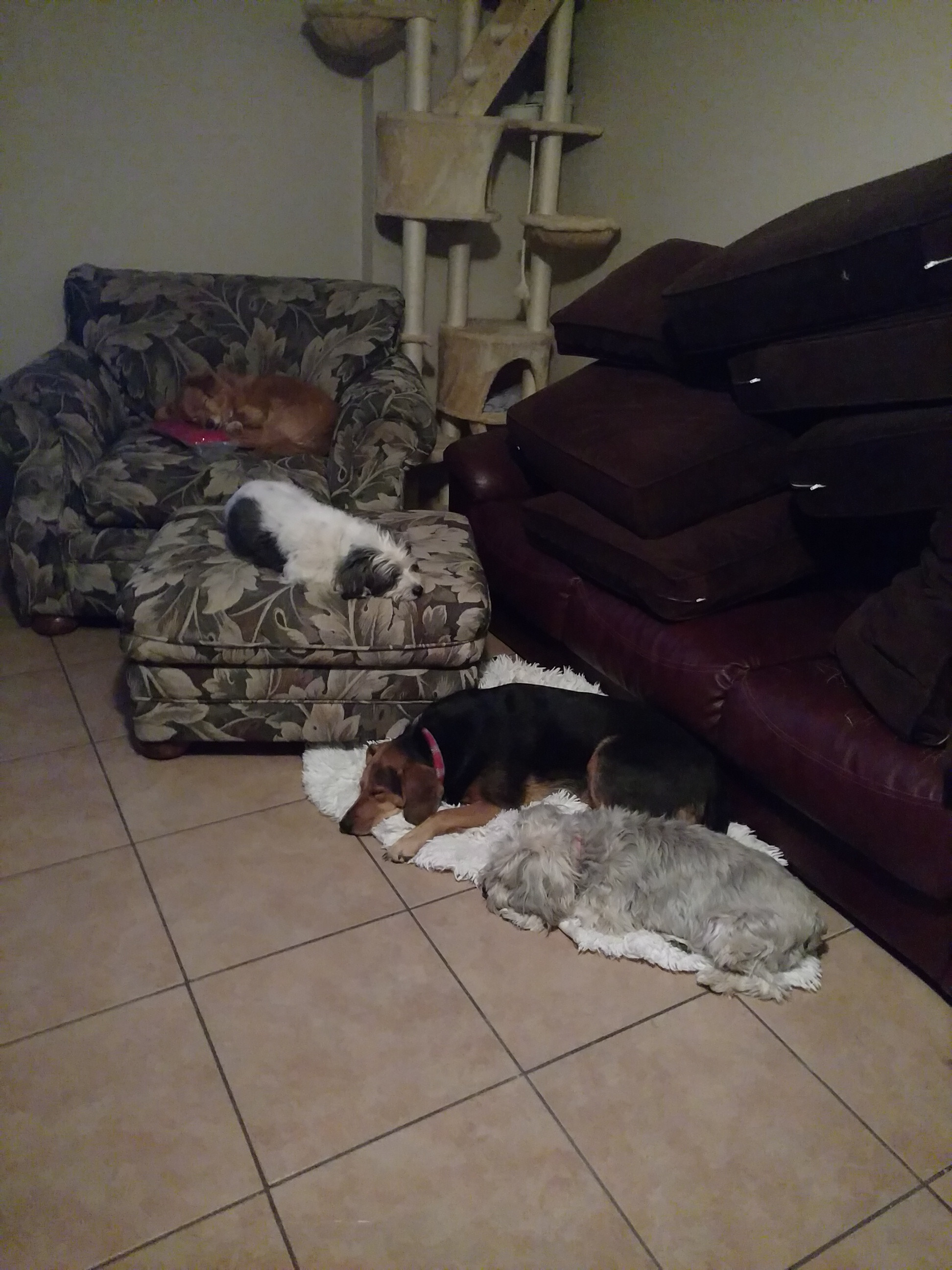 И да, розовое пятно на столе — это след от ужасного подарочного корзины «Баллонного бабуина». Но в любом случае, вот наша команда наслаждается нашей недавно убранной гостиной.
