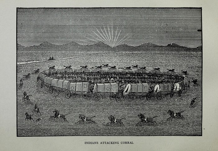 * Имеется в виду выражение circle the wagons -- сплотить ряды. Это отсылка к защитной тактике первых поселенцев, когда повозки при нападении или привале выстраивались кругом.