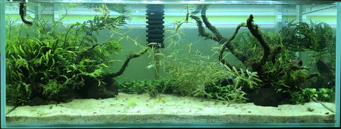 Днём я постарался сымитировать свет от металл галогеновых лапм ADA. Свет которых мне очень нравится. Получилось очень близко.