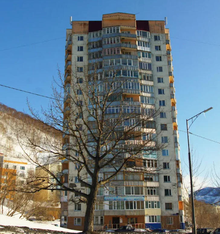 На фото знаменитая 1-я монолитная 16-этажка в Петропавловске-Камчатском. Сдана в эксплуатацию в 1994г. В ней, кстати, проживает автор проекта этого здания, Валерий Николаевич Дроздюк. И считает, что оно самое прочное на Камчатке.