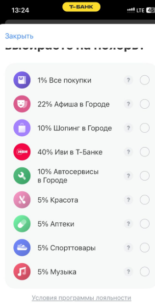 я чекнул - у меня вообще другие кэшбэки в тиньке - реально ни хера интересного, поэтому все оплаты гоню с карты озон - там хоть приколы с накопленем звездочек веселят
