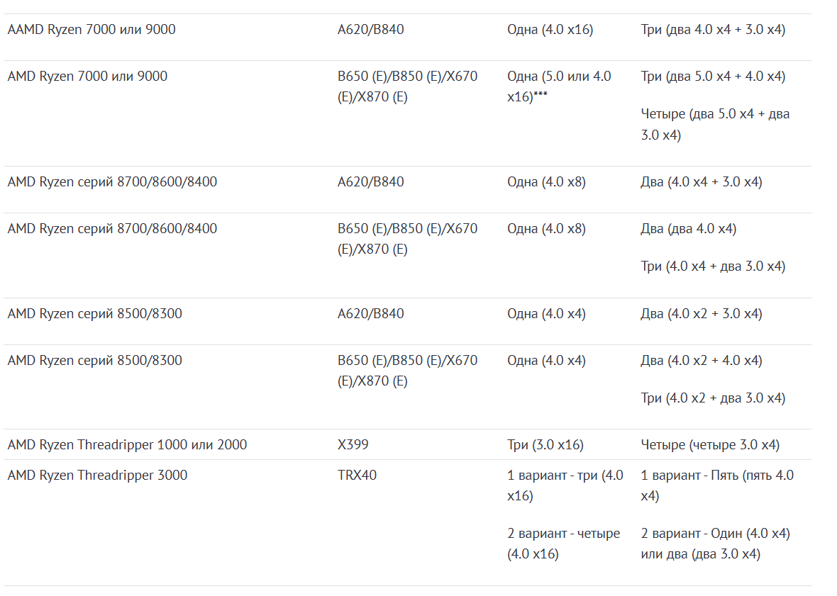 *** - версия PCI-E зависит от реализации поддержки на конкретной материнской плате.