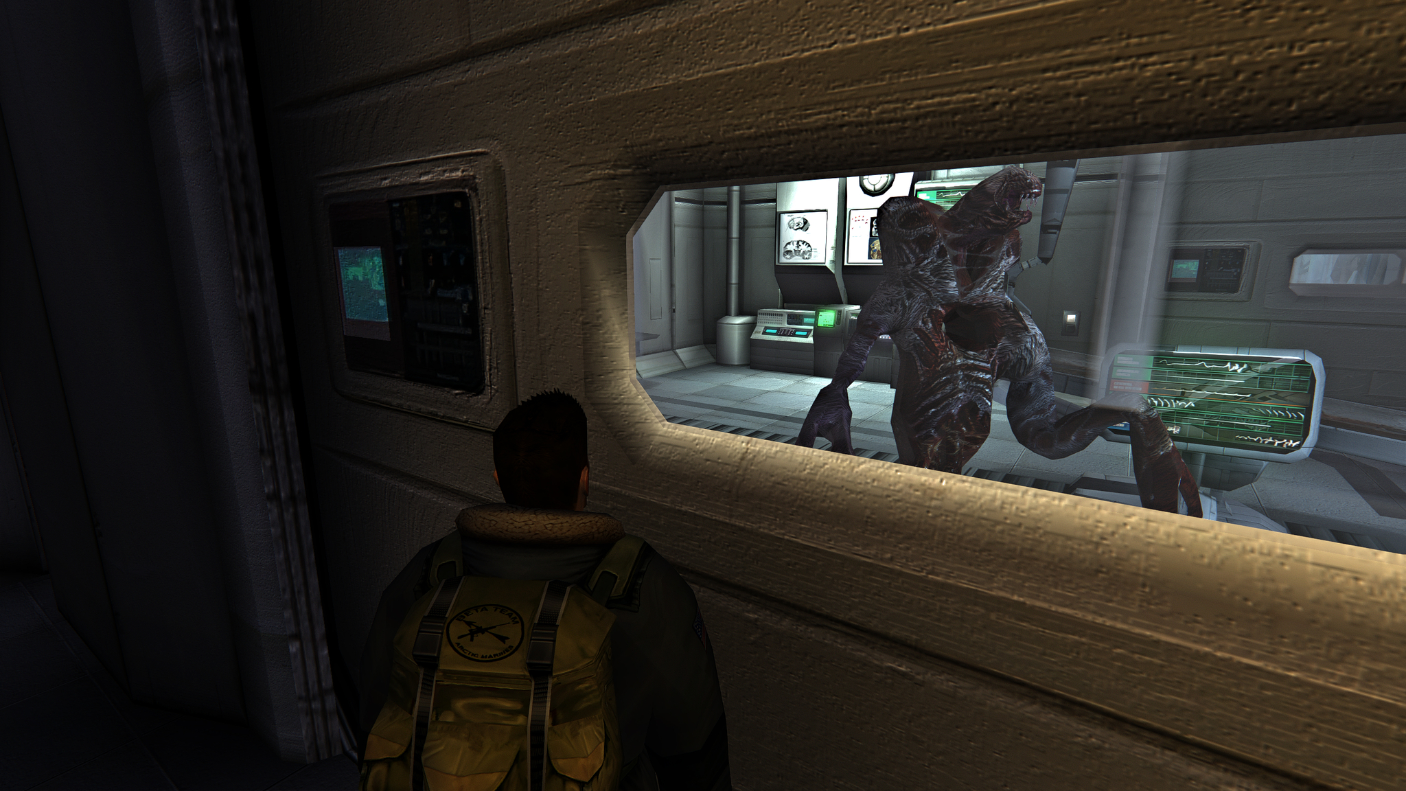 Снизу обновленный вариант — The Thing v 1.2, разрешение 2715x1527 (правленый exe под соотношение 16x9), все настройки на MAX, 4x upscale текстуры, 4x upscale BUMP-карты от Suicide Machine, ReShade (HDR, EyeAdaption, Clarity, SMAA, FlexibleCA, DeHaze, LumaSharpen, MXAO, FilmGrain2)