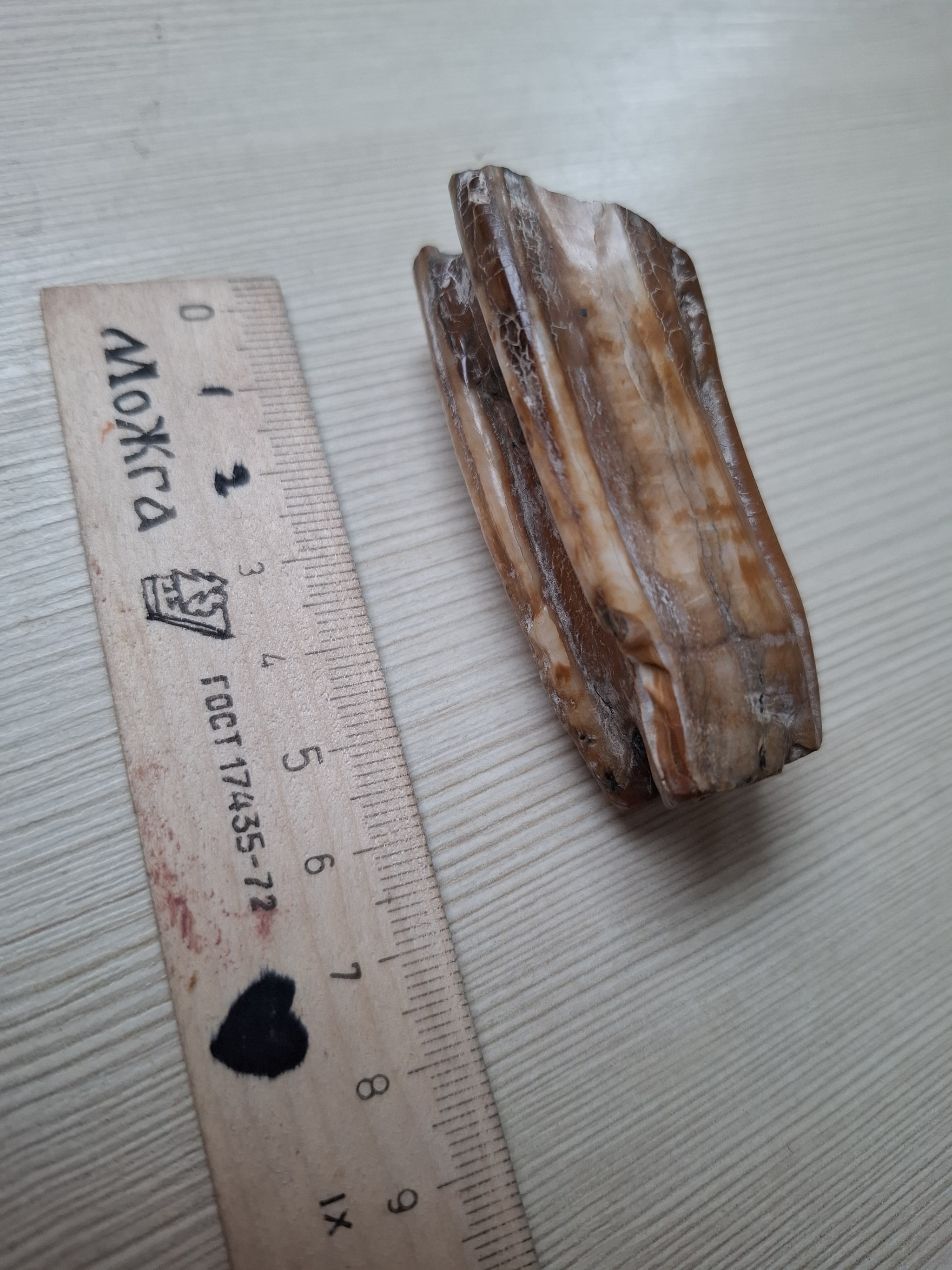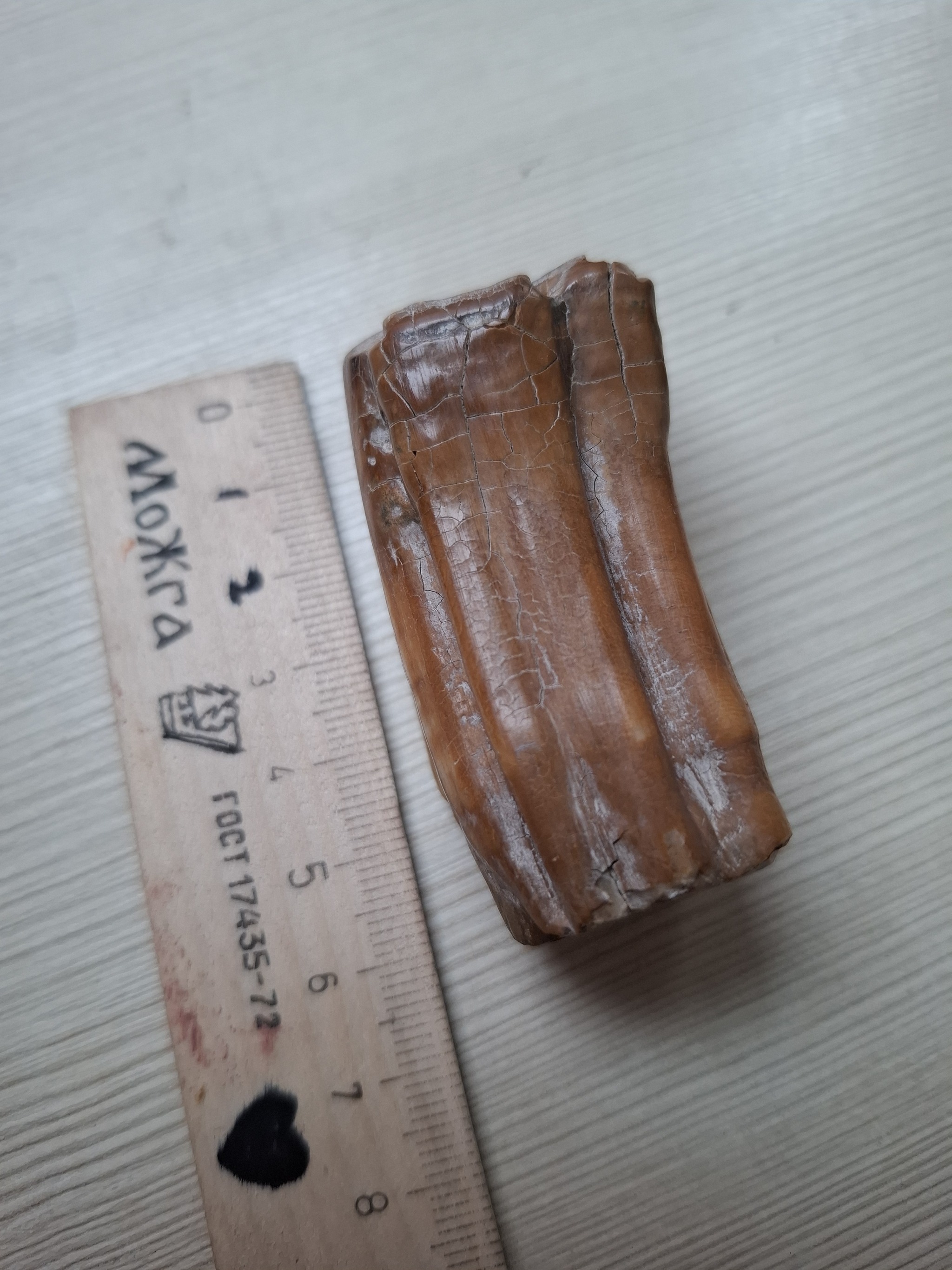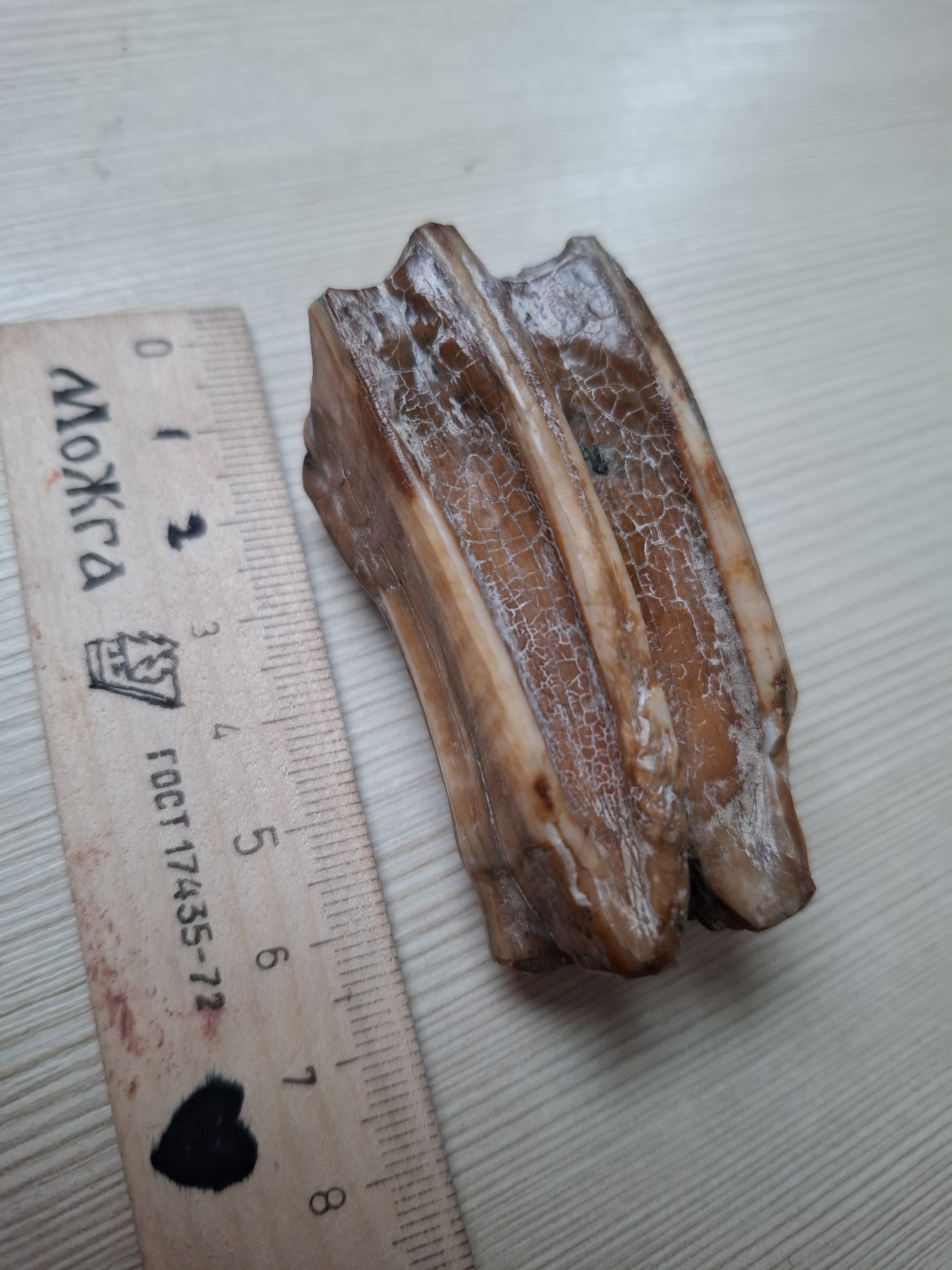 У меня есть зуб ископаемого жвачного, животное папа с коллегами нашел в геологической экспедиции , при вскрыше торфов в тундре.
