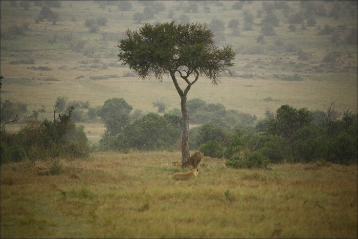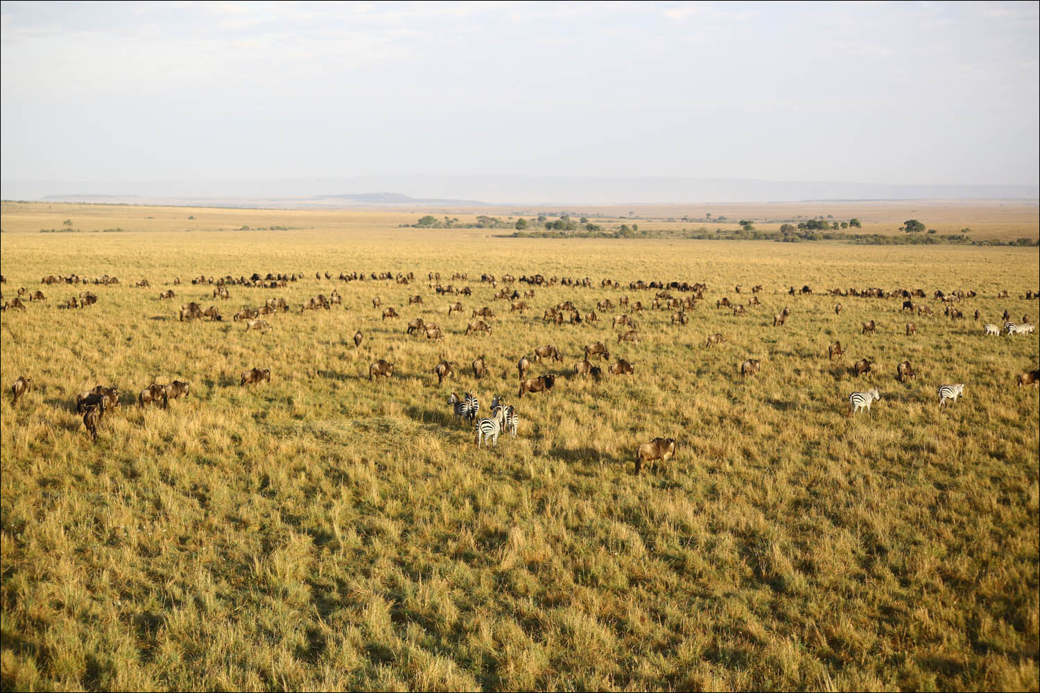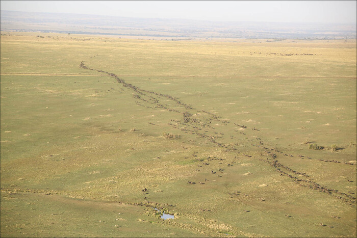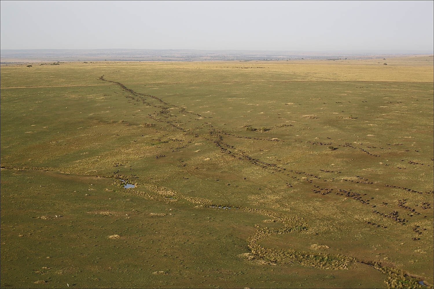 Здесь мы врываемся на ещё один уровень экосистемы. Место — национальный парк (точнее, кенийская Масаи-Мара и танзанийская Серенгети). То есть животные находятся под охраной. Разрешена деятельность масаев и движение на автотранспорте по дорогам. Съёмочные группы за конские деньги могут брать off-road лицензию и двигаться как хотят. Съёмка с дрона — ещё более дорогое удовольствие, и на практике не применяется. Кадры с воздуха — это бесшумный воздушный шар.