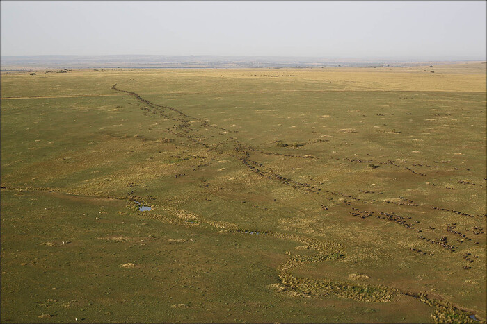 Это не просто река, а граница между Танзанией и Кенией — и между Масаи-Мара и Серенгети. Серенгети («равнина» по-масайски) — это большая область в Танзании, где могут с комфортом расположиться огромные (самые большие на планете) стада парнокопытных. Речь о десятках тысяч. Масаи-Мара («холмистая земля масаев») — на порядок меньшая область, что-то вроде горного мешка, куда можно откочевать на часть сезона. Поэтому гну приходят во второй половине лета и уходят в начале осени.