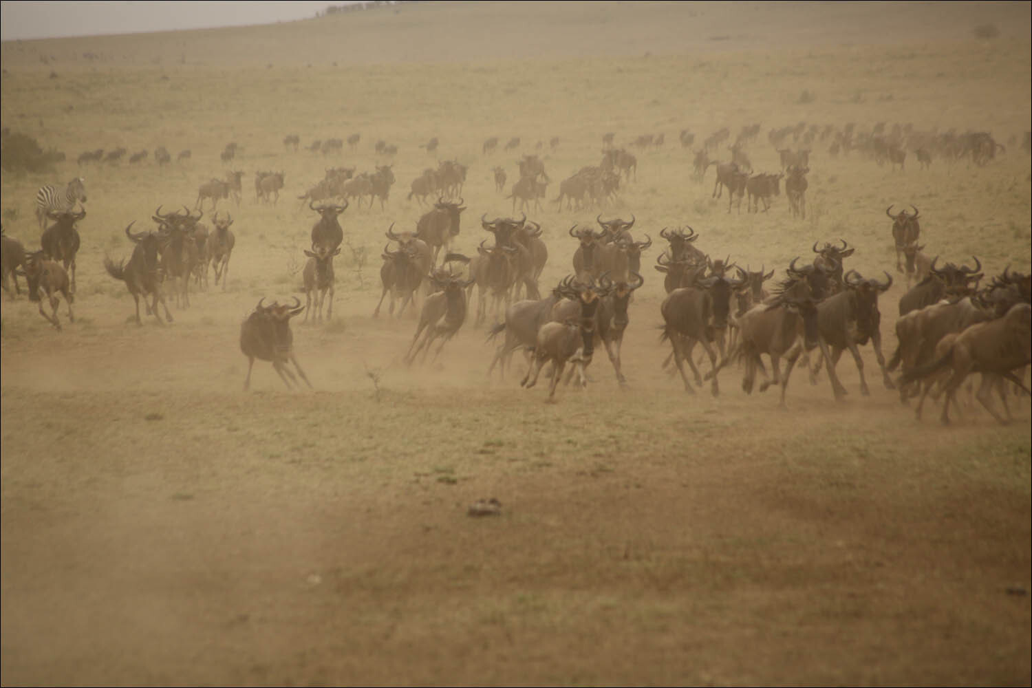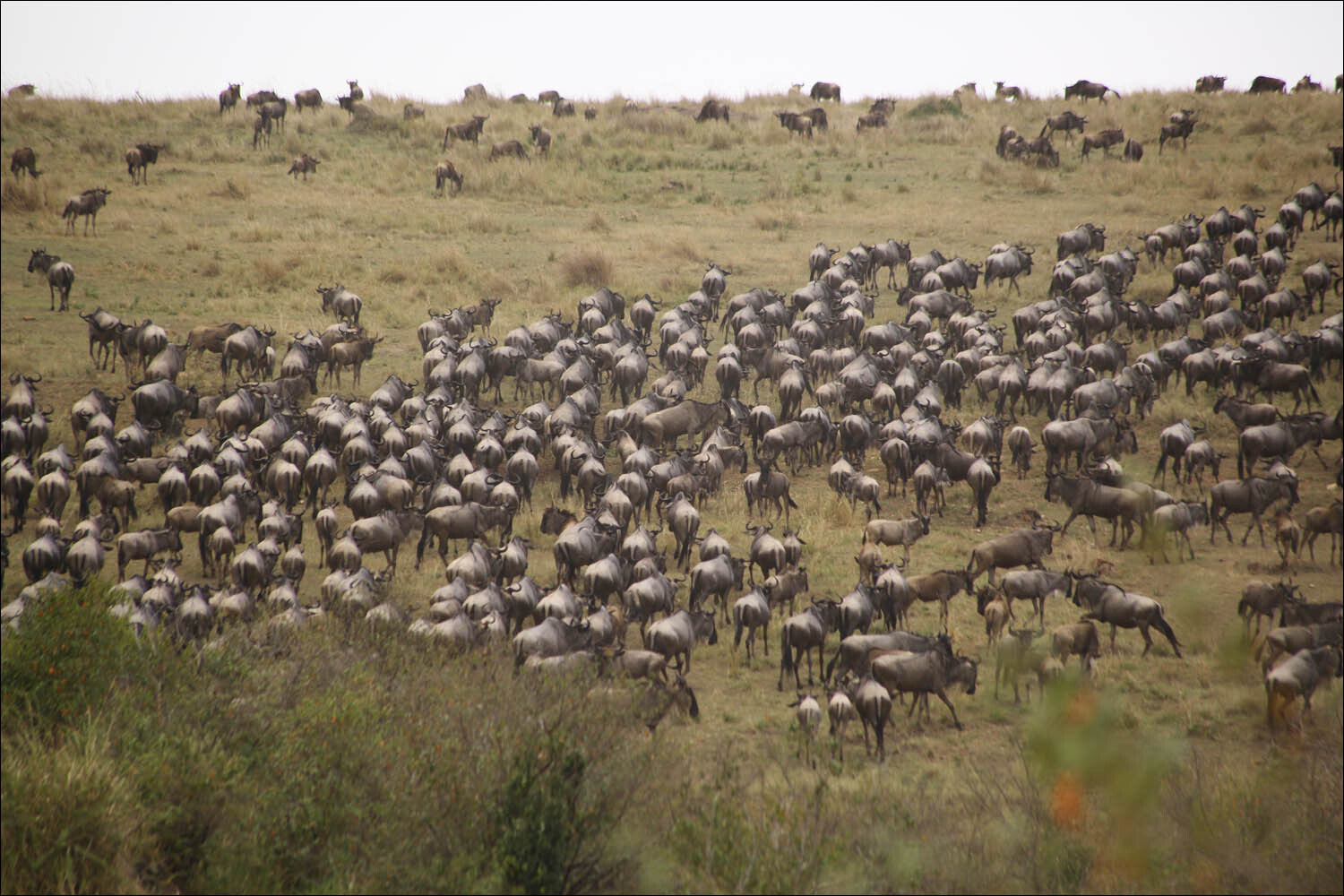 В нашем случае гну копились на берегу Мары около 6 дней. Потом за 2 часа 20 минут перешло от 3 до 8 тысяч особей по оценке местных.