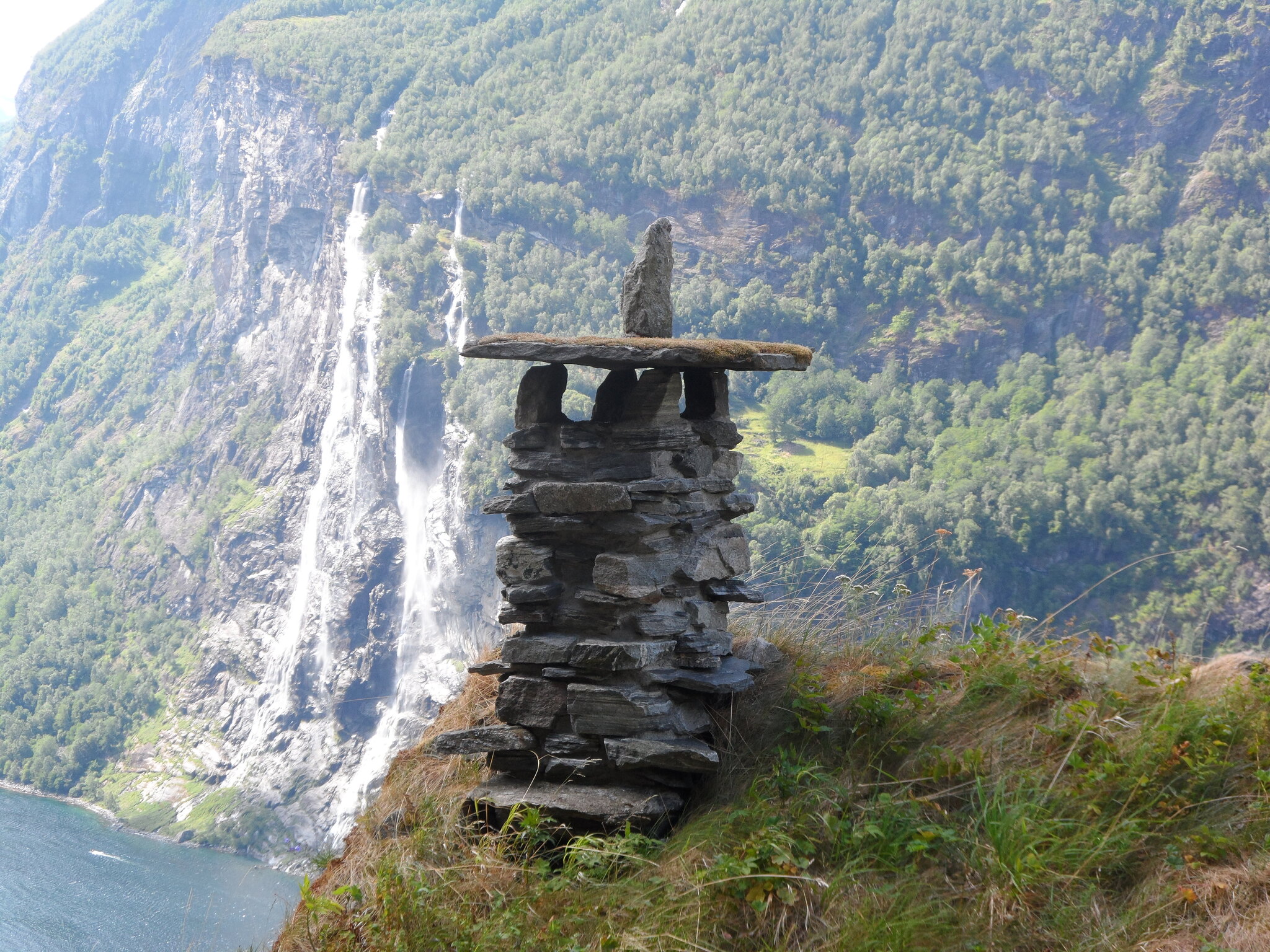 Добравшись до Гейрангер-фьорда, я просто поставил палатку на частной территории, откуда меня выгнали лишь через день, ибо по закону можно сутки в Норвегии ставить палатку где угодно. После чего я уковылял с ней в соседнюю рощу, а позже всё же потратился на удобный кемпинг с интернетом, душем и ароматными круассанами по утрам. Ну а далее просто гулял по пешим трасам окрестных вершин, выбирая по цвету "чёрные" - самые живописные - и видимо самые экстремальные по мнению норвежцев, но по нашим уральским меркам совсем нетрудные и комфортные. К слову, погода на фьорде стояла идеальная.