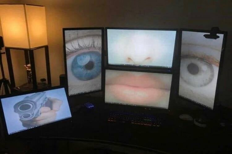 1592 K0T0FEICH Специфический юмор Продолжение поста «В чем смысл двух мониторов?»2 4 года назад А потом ты пошел во все тяжкие и докупил еще 3 Монитор IT юмор Глаза Нос Губы Пистолеты Ответ на пост 13 1 1 1 Ещё 0